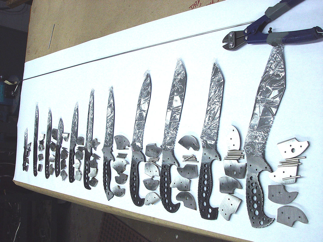 I make many, many different styles and patterns of knives. Currently, I have over 500 individual patterns, and at least a dozen more are awaiting my photography so that I can include them on the patterns page. Because I make so many patterns, it's a bit ridiculous to have to submit these to a company that water jets the blades. I like to start on a knife, do everything myself, and have complete control over the process without having to wait for any outside contractor. This leaves everything in my control, and like my Heat Treating, means that I can tailor each individual aspect of the task to each individual project.