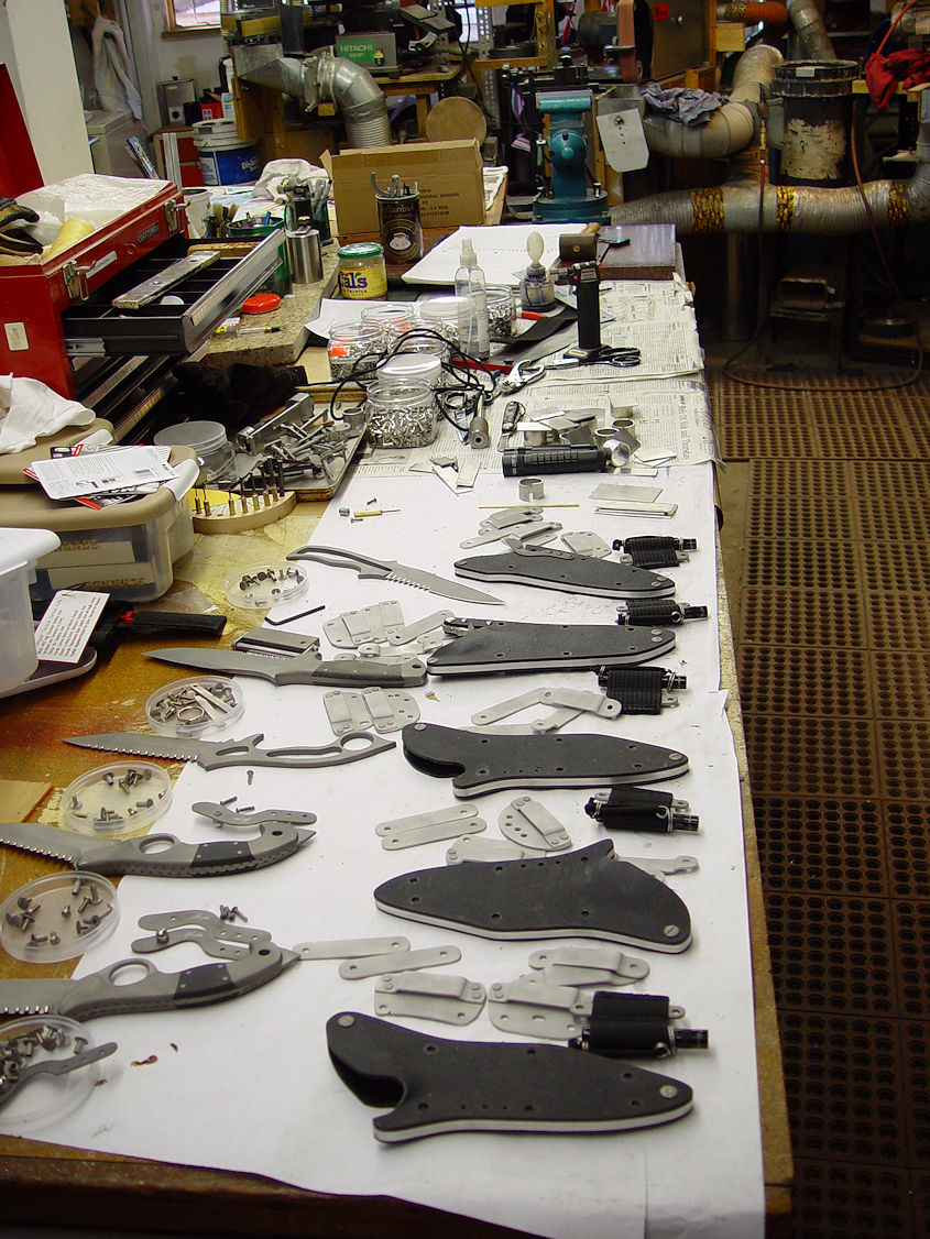 From my perspective, a knifemaker is not a simple worker; he's a technician, a craftsman, and, above all, an artist. If it's simple repetitive tasks that are performed, one might as well set up and program a machine to do them, for the human factor is not necessary. The shop then becomes the studio, where all is seen through the eyes of the artist and creator, including every piece of equipment, rack of storage, or station for dedicated tasks.
