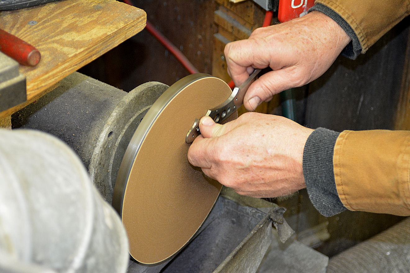 Most knifemakers modify their surface grinders to run with belts. This is because belts are efficient, and have wide and substantial grinding surfaces, and are readily available in the knife shop because they are used on the mainstay machine, the belt grinder.