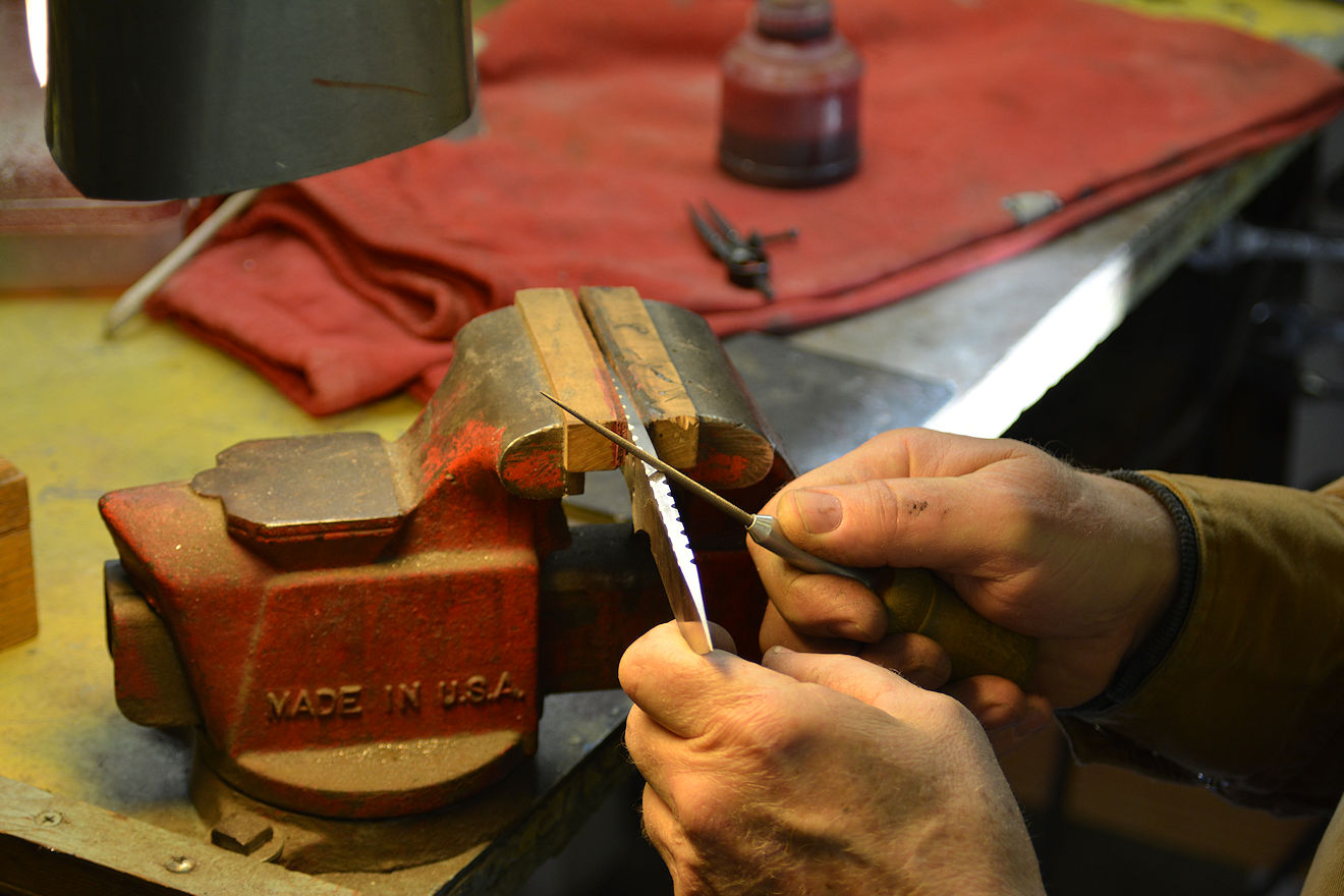 Cutting metal is an extremely important part of the entire knifemaking process. Because I make so many different designs and patterns of knives in so many sizes, with so many metal parts and fittings, the saw becomes more than a tool that blocks out material. The evolution of the bandsaw becomes an art form and skill set all to its own.