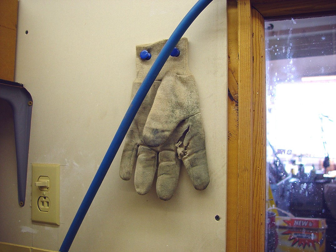 Safety in the shop and studio is a constant focus. I keep this glove tacked to the wall to remind me to wear my gloves when buffing blades.