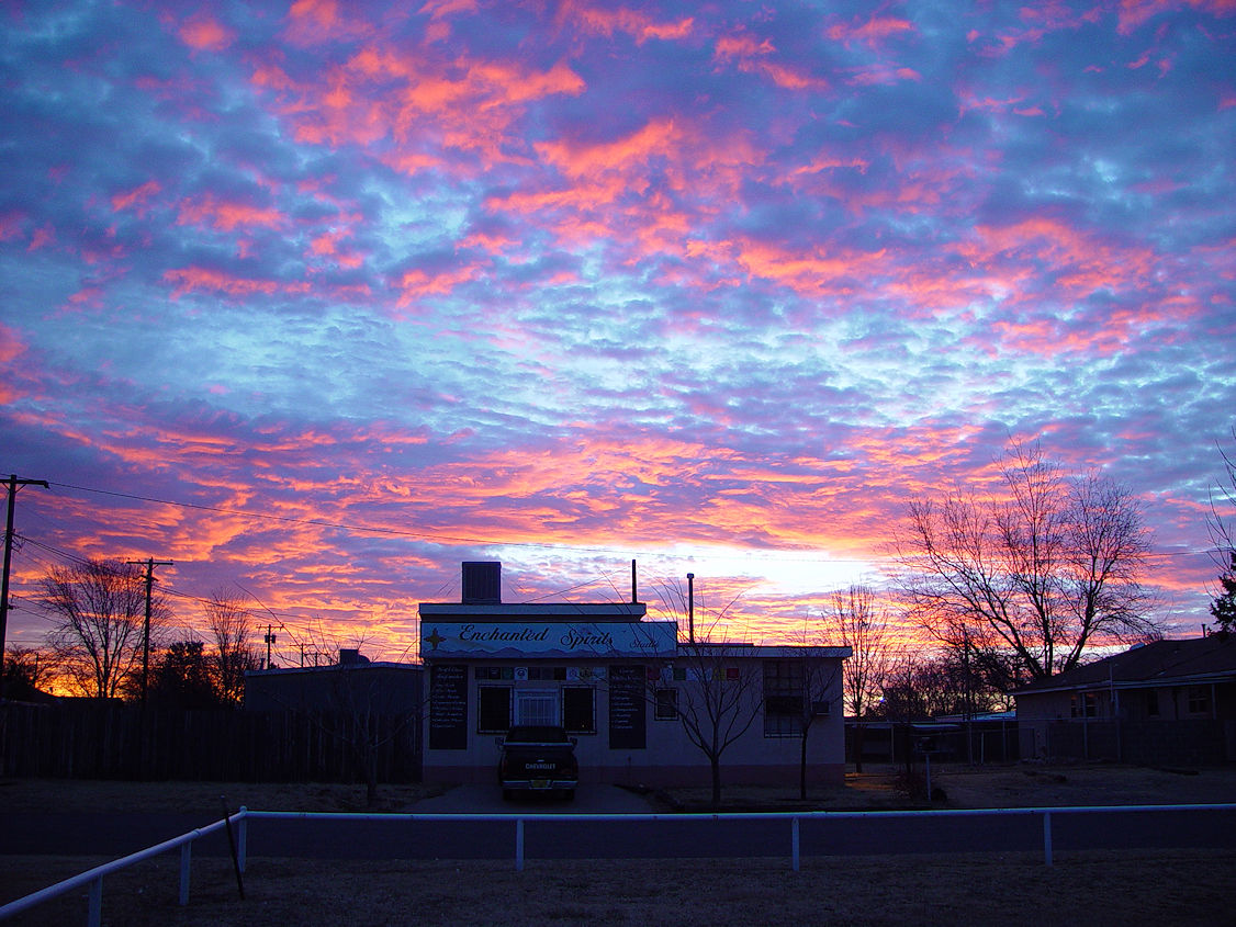 This is a shot of the sky during sunrise several years ago. The studio looks like a small building, but it's a long structure, with a small front facing the street.