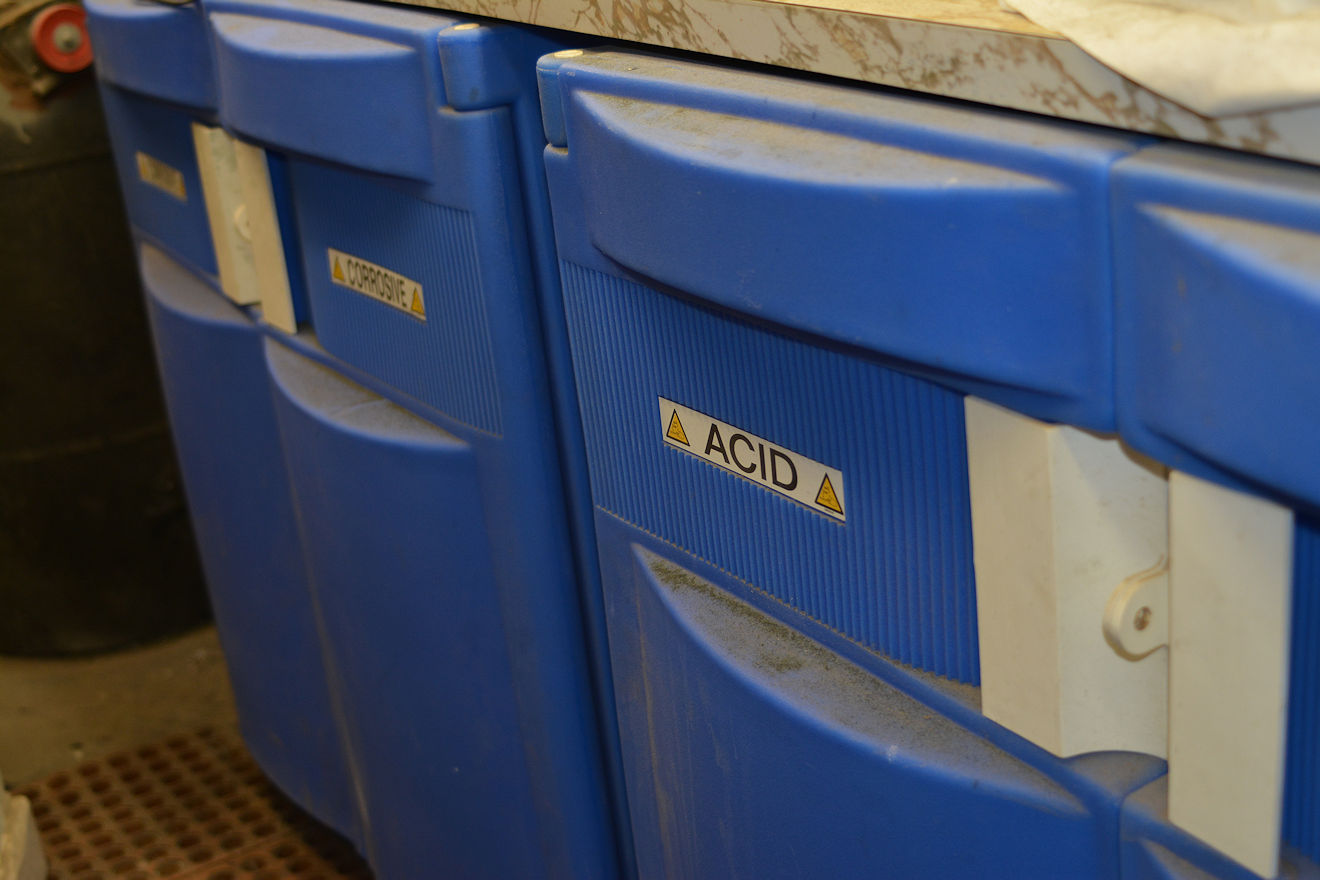 These cabinets are all polyethylene and the are not cheap. It's common for a cabinet of this type to cost more than $1000.00 US. Chemicals, properly stored are essential aids to the various processes, and safety is at the forefront of consideration of all chemistry and processes.