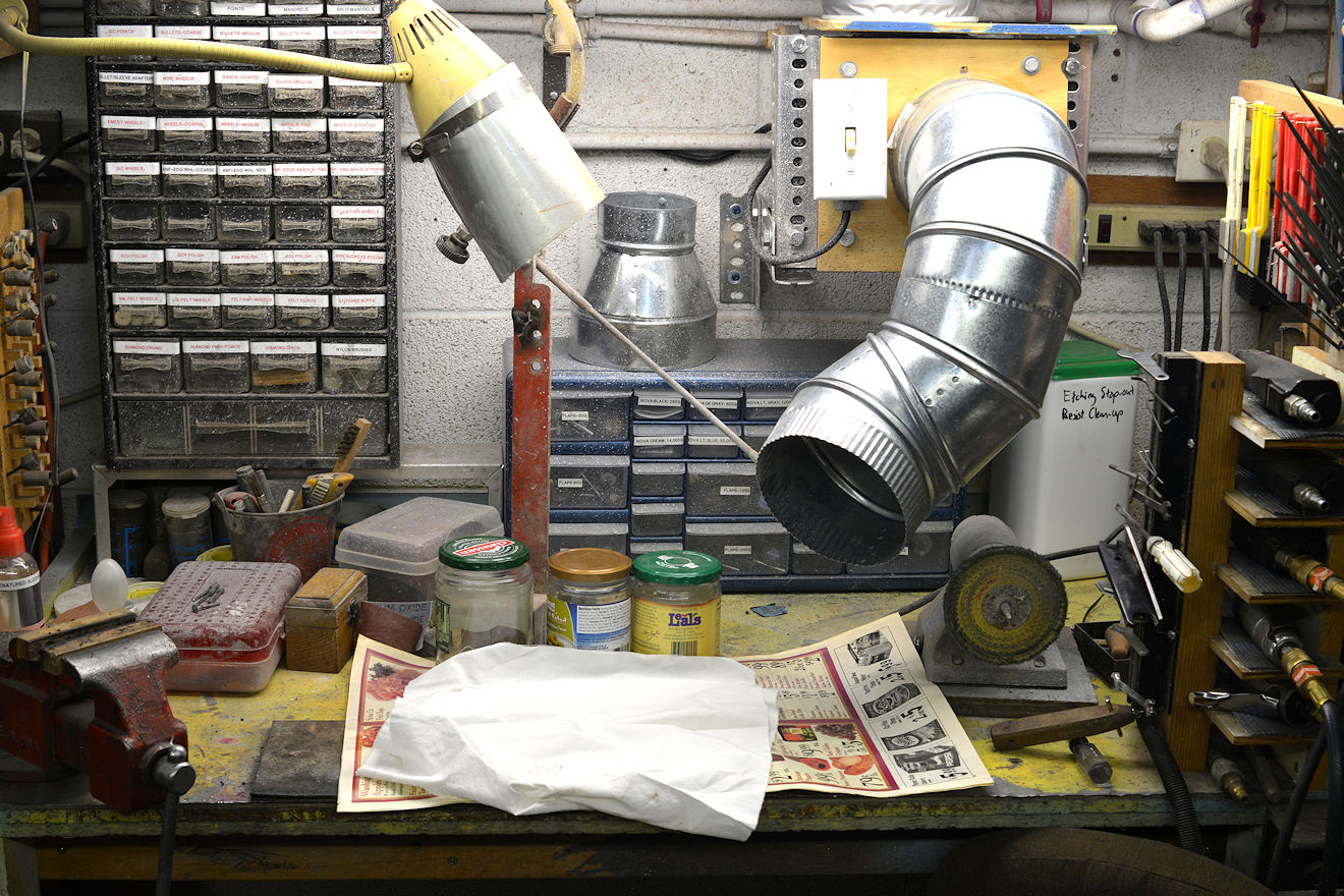 Whether you call it a shop or a studio, this is the place where all of the creativity and execution happens. It's a simple and yet sophisticated and sometimes complicated place, filled with equipment, supplies, and work areas. There isn't a spot that is unoccupied, not a place that doesn't have some critical purpose to the tradecraft and art.