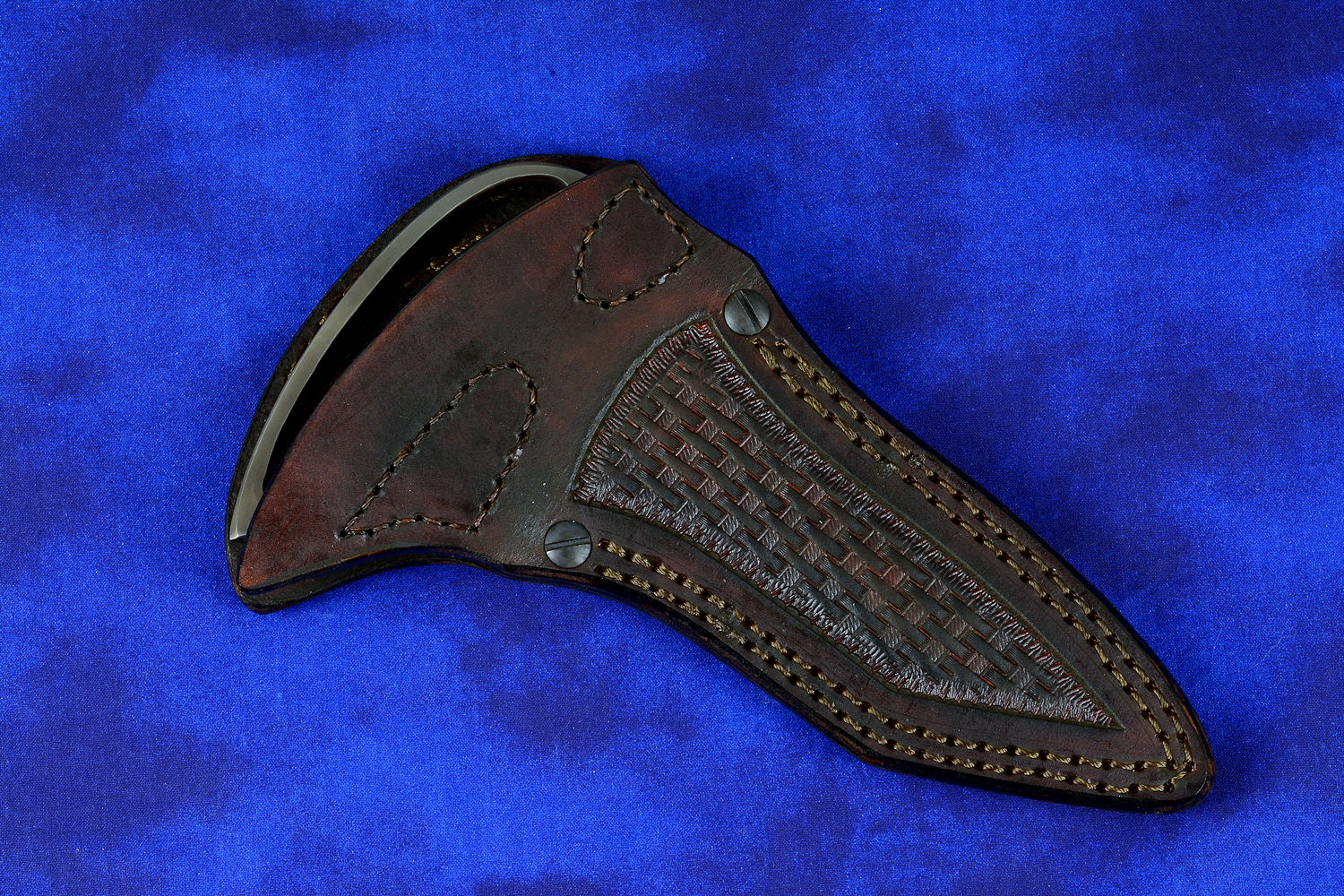 twice as thick as the leather on a saddle. I hand-stamped/tooled the