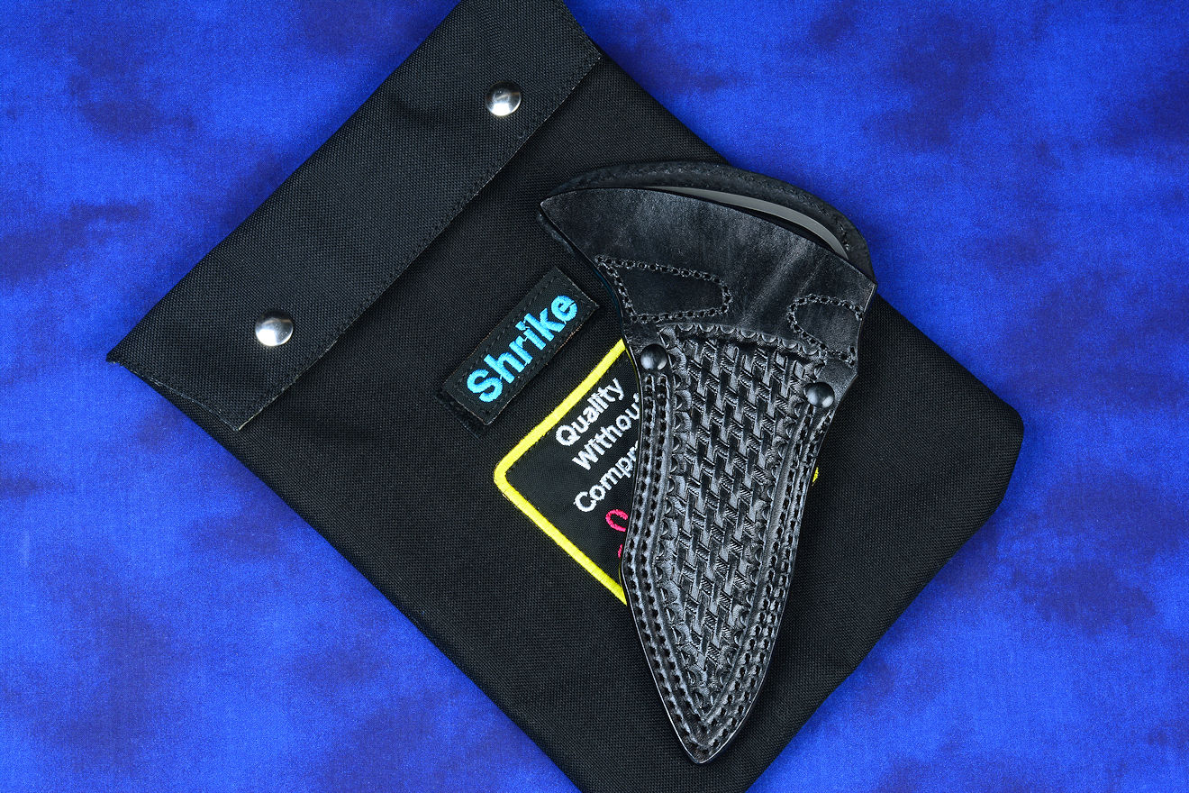 in the sheath retention method in the leather (described below). The blade is supported by a