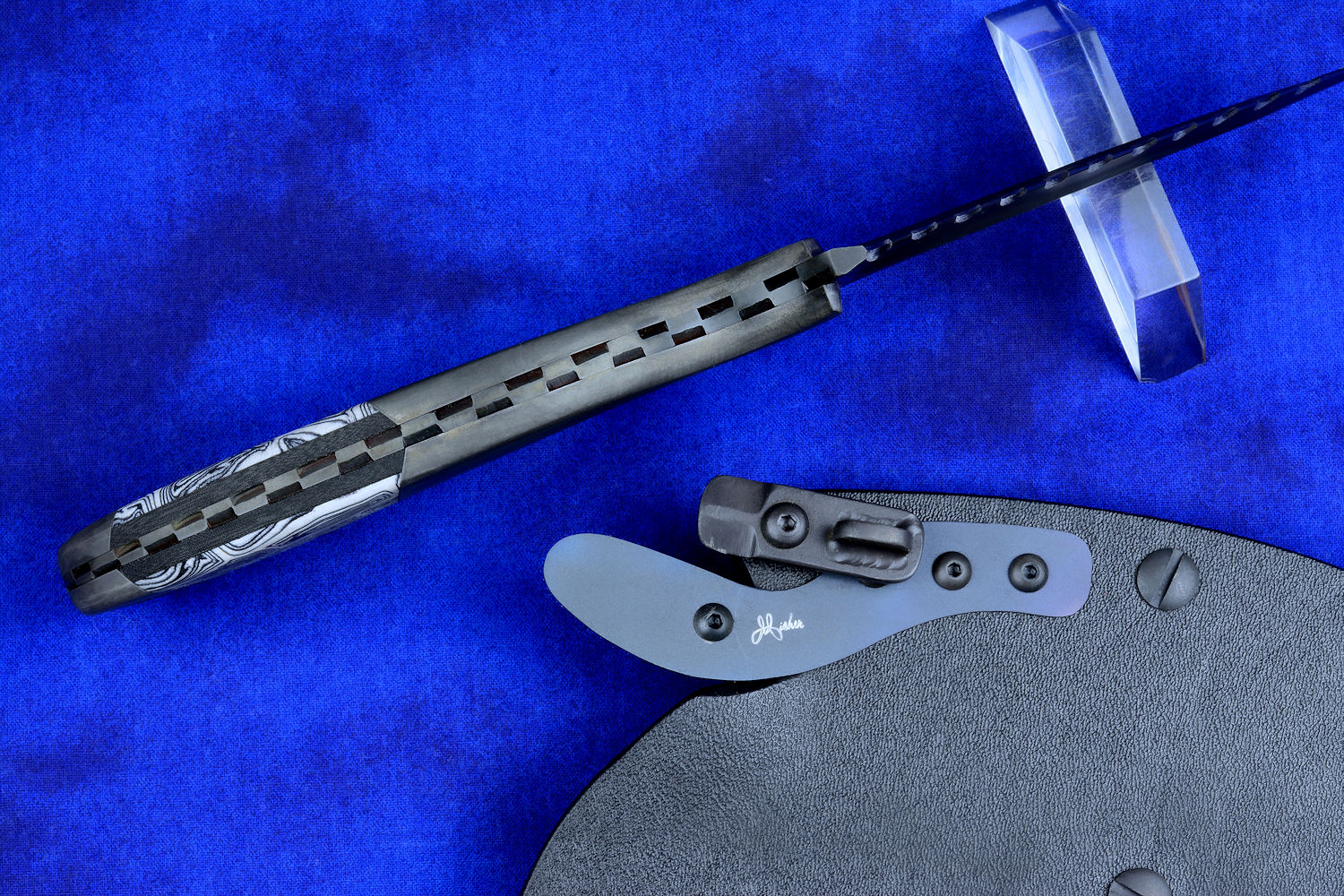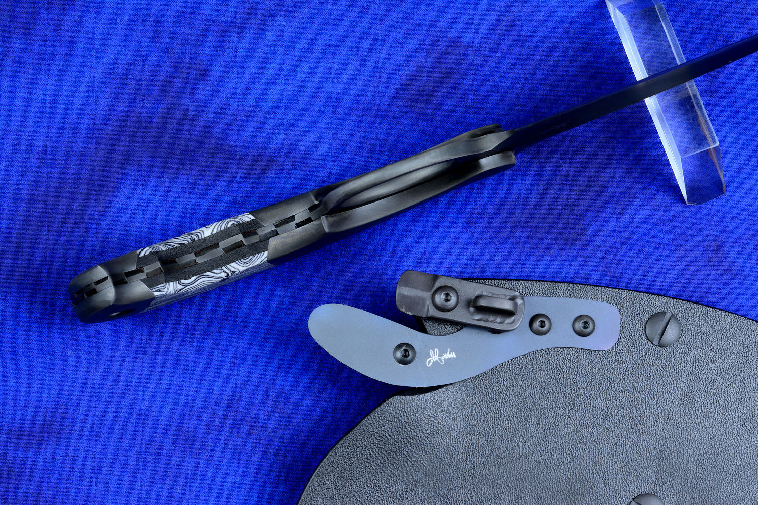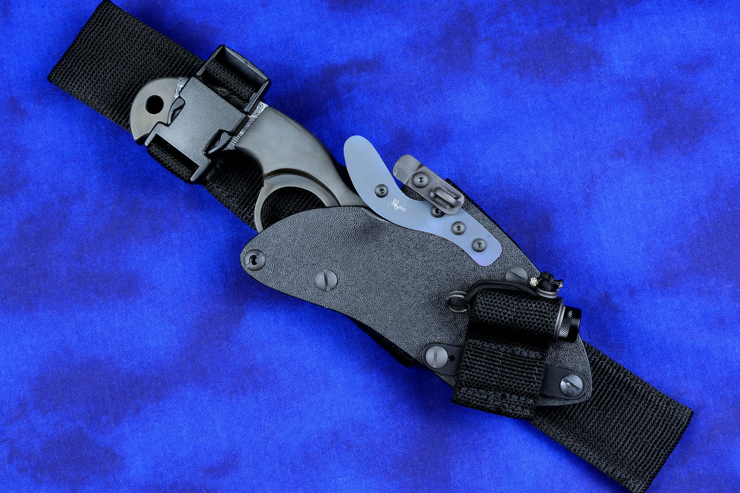 black acetyl buckles. DMT diamond sharpener.