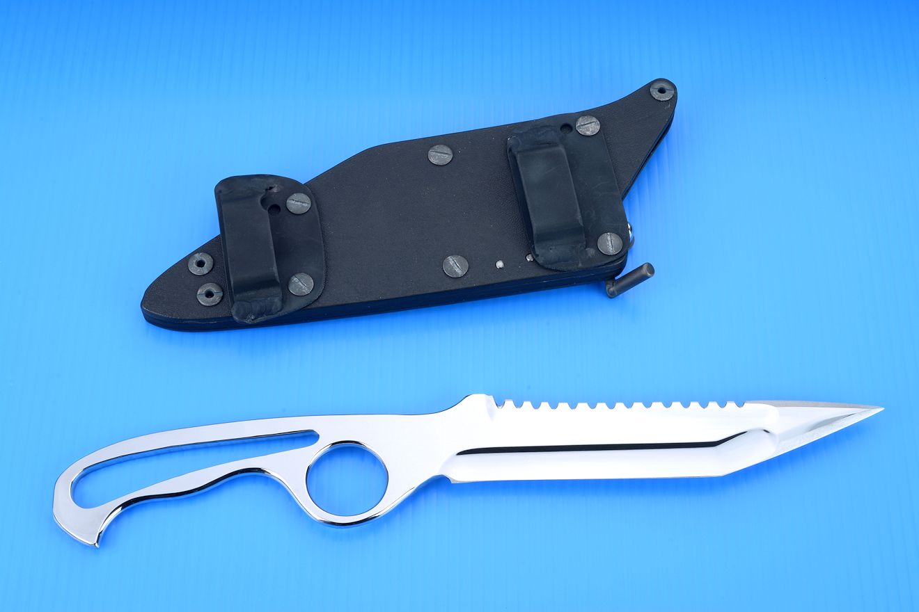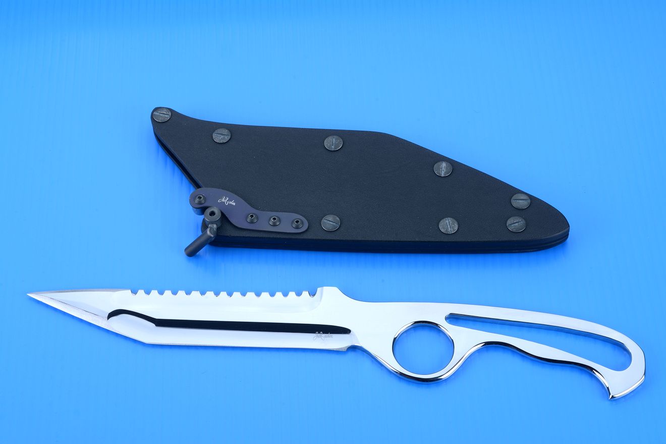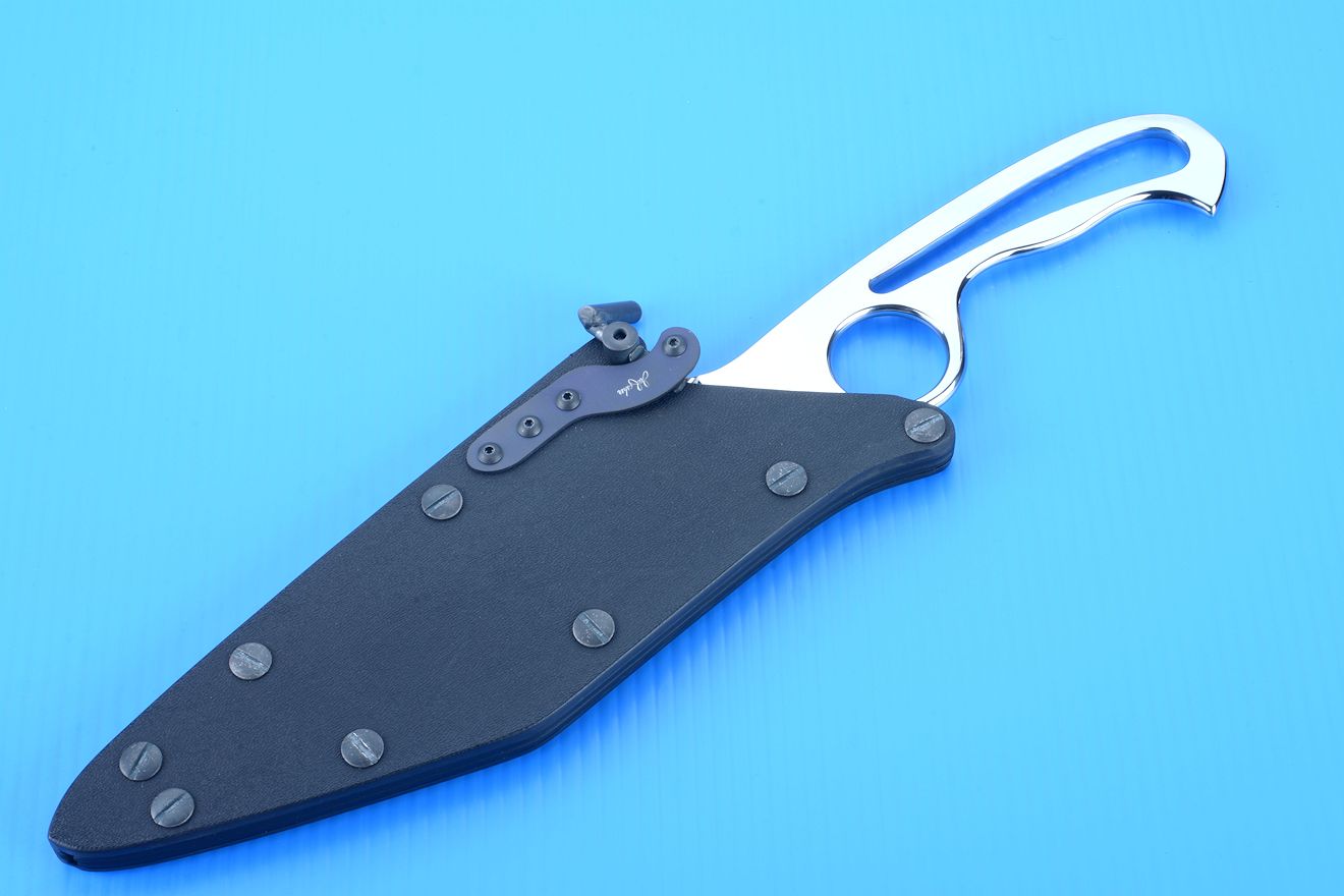 - Sheath: Hybrid tension or hybrid-tension cam-lock in kydex, anodized 5052H32 aluminum, blackened and passivated 304 stainless steel, anodized 6AL4V titanium