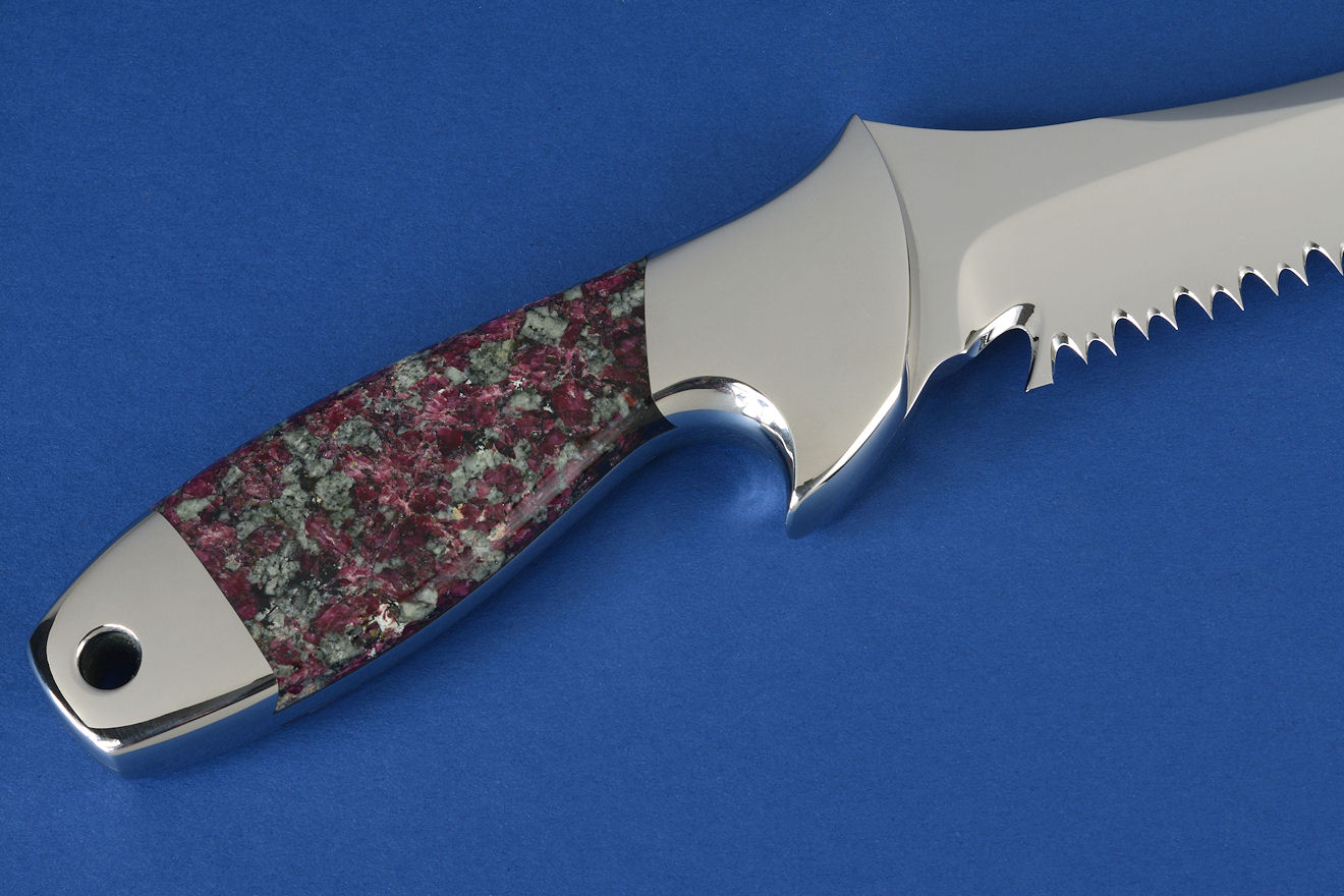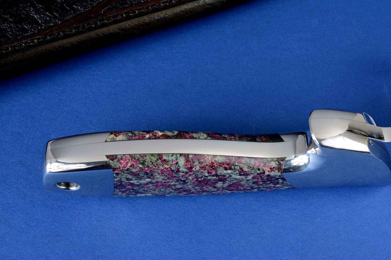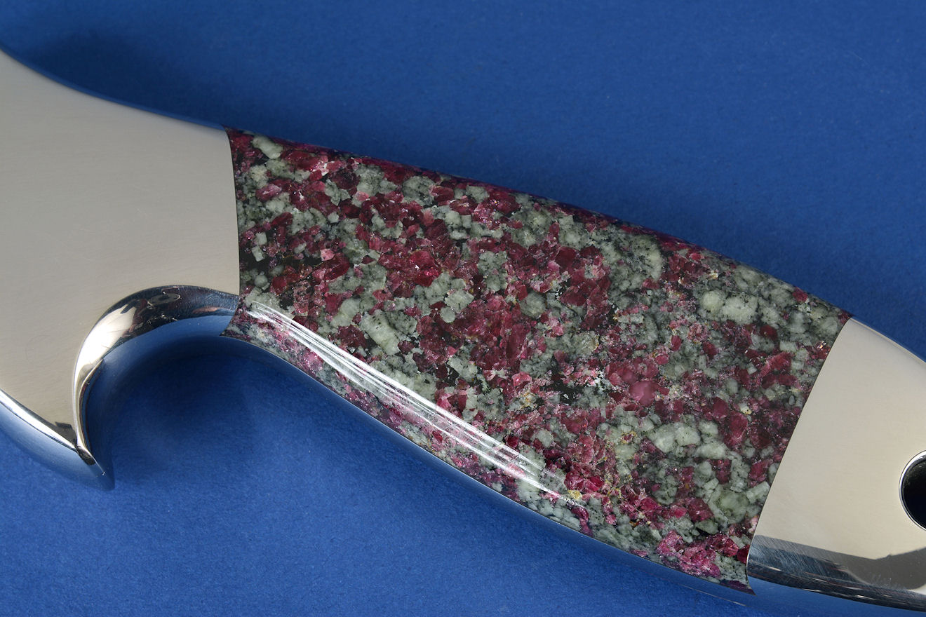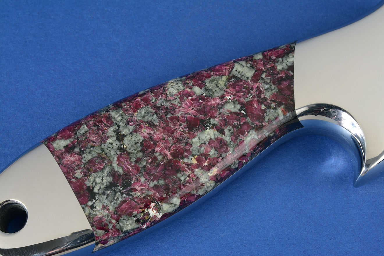 and smooth. The bolsters bed and lock a pair of striking Eudialite