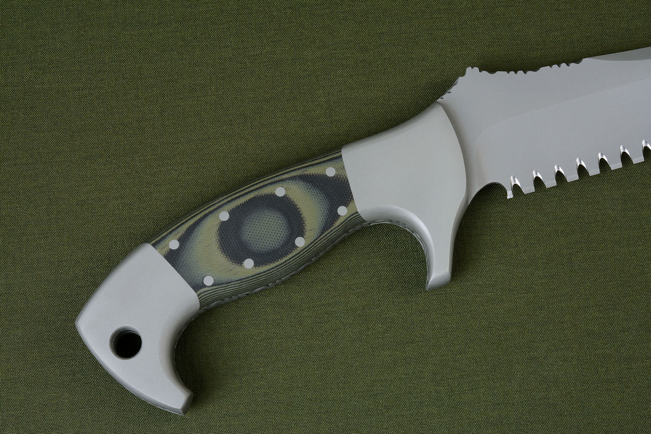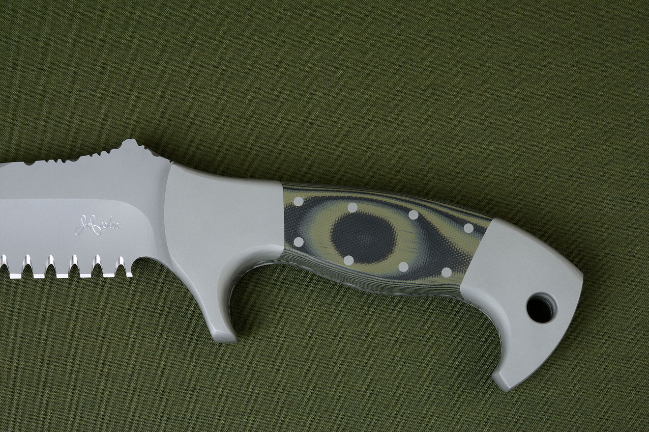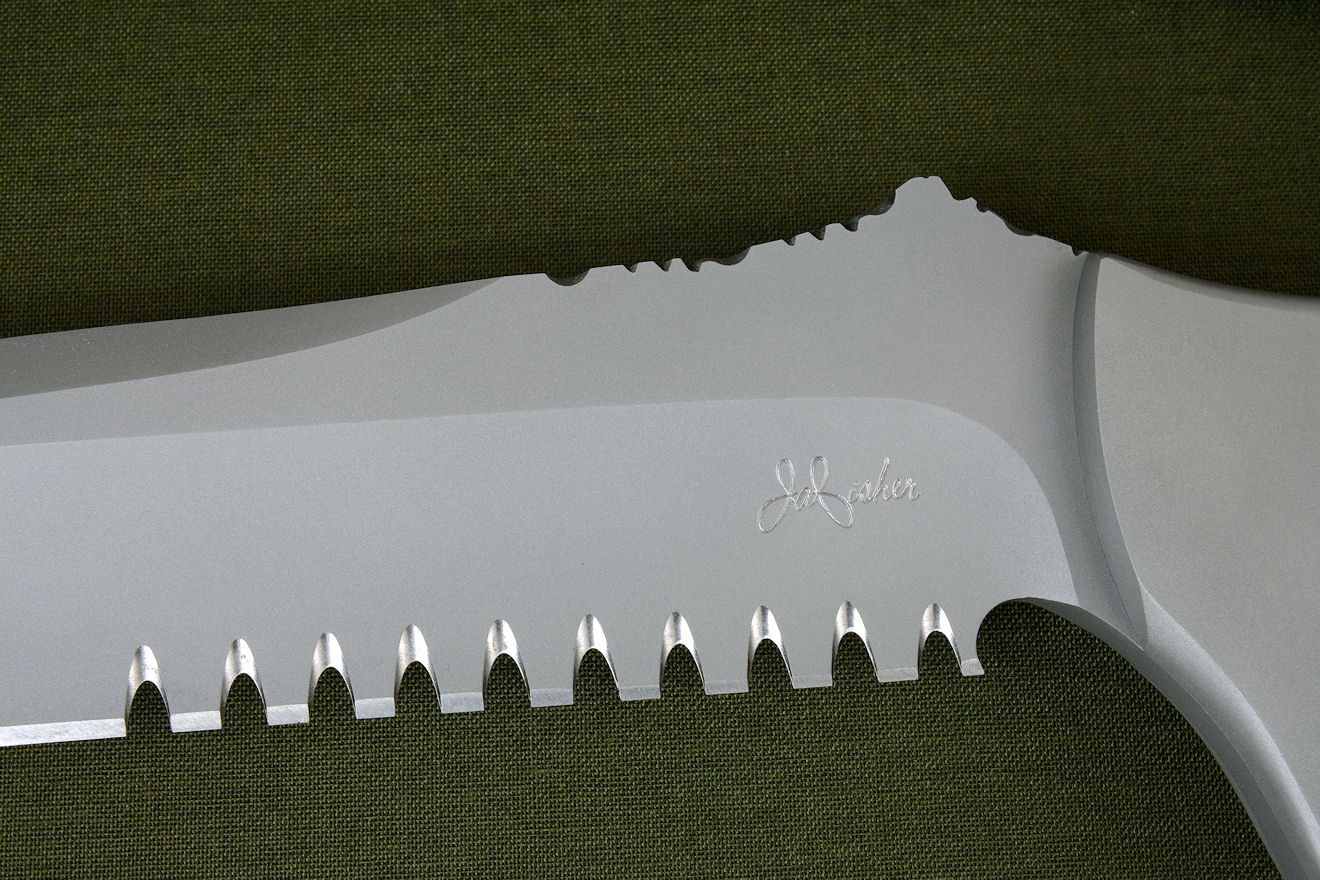 single bevel cutting edge. I included three inches of my hammerhead serrations for