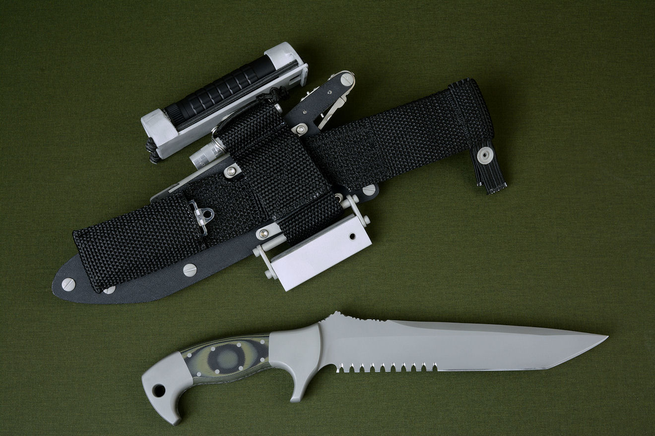counterterrorism clients. It allows the knife to be worn, handle