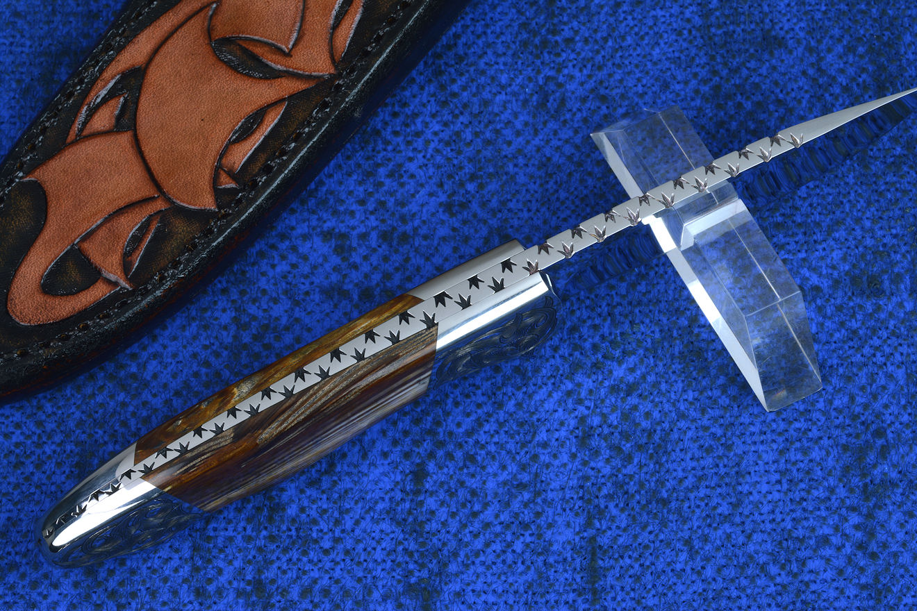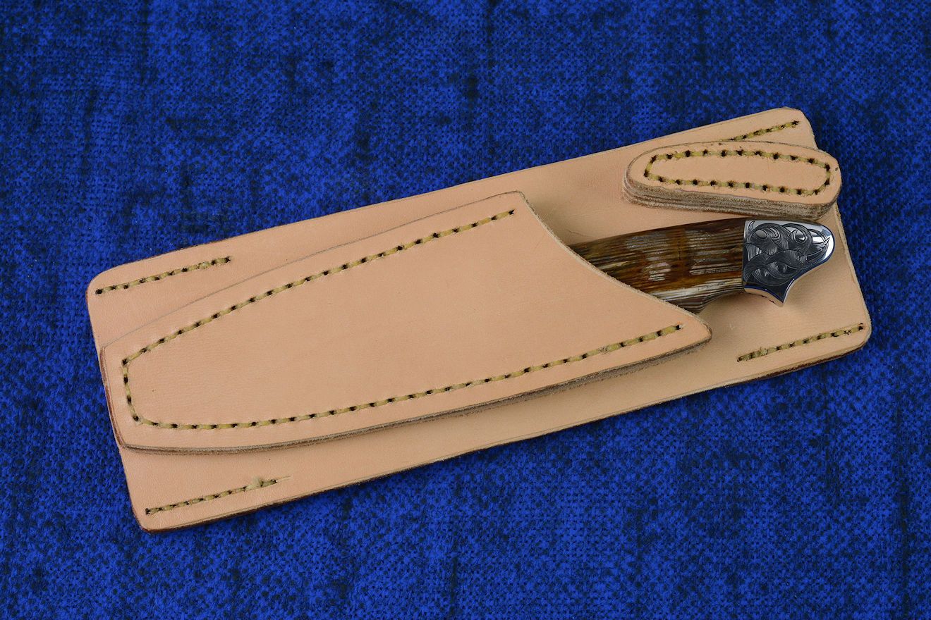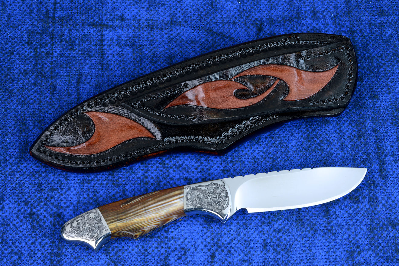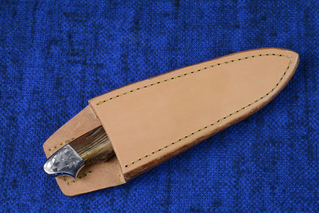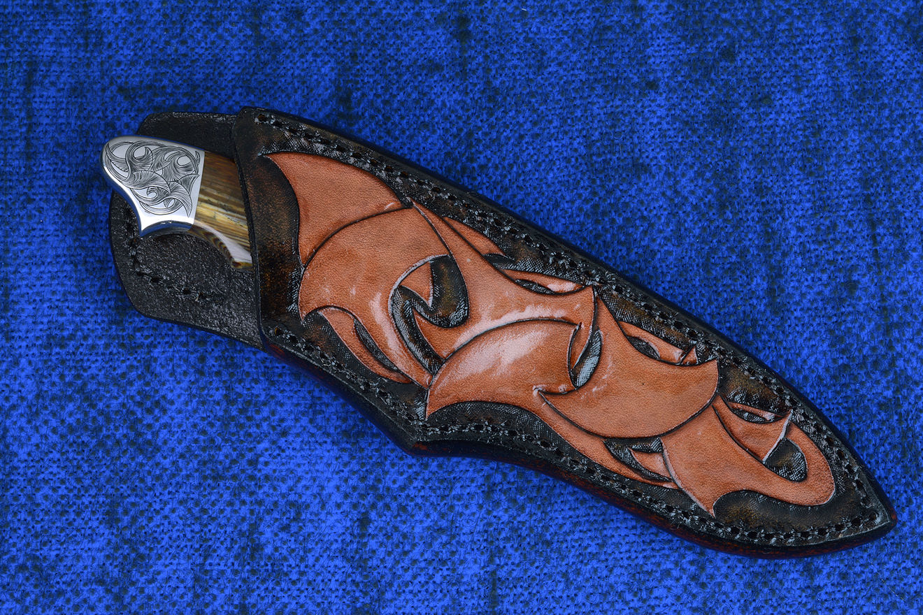 Sheath: Hand-carved, hand-dyed leather shoulder