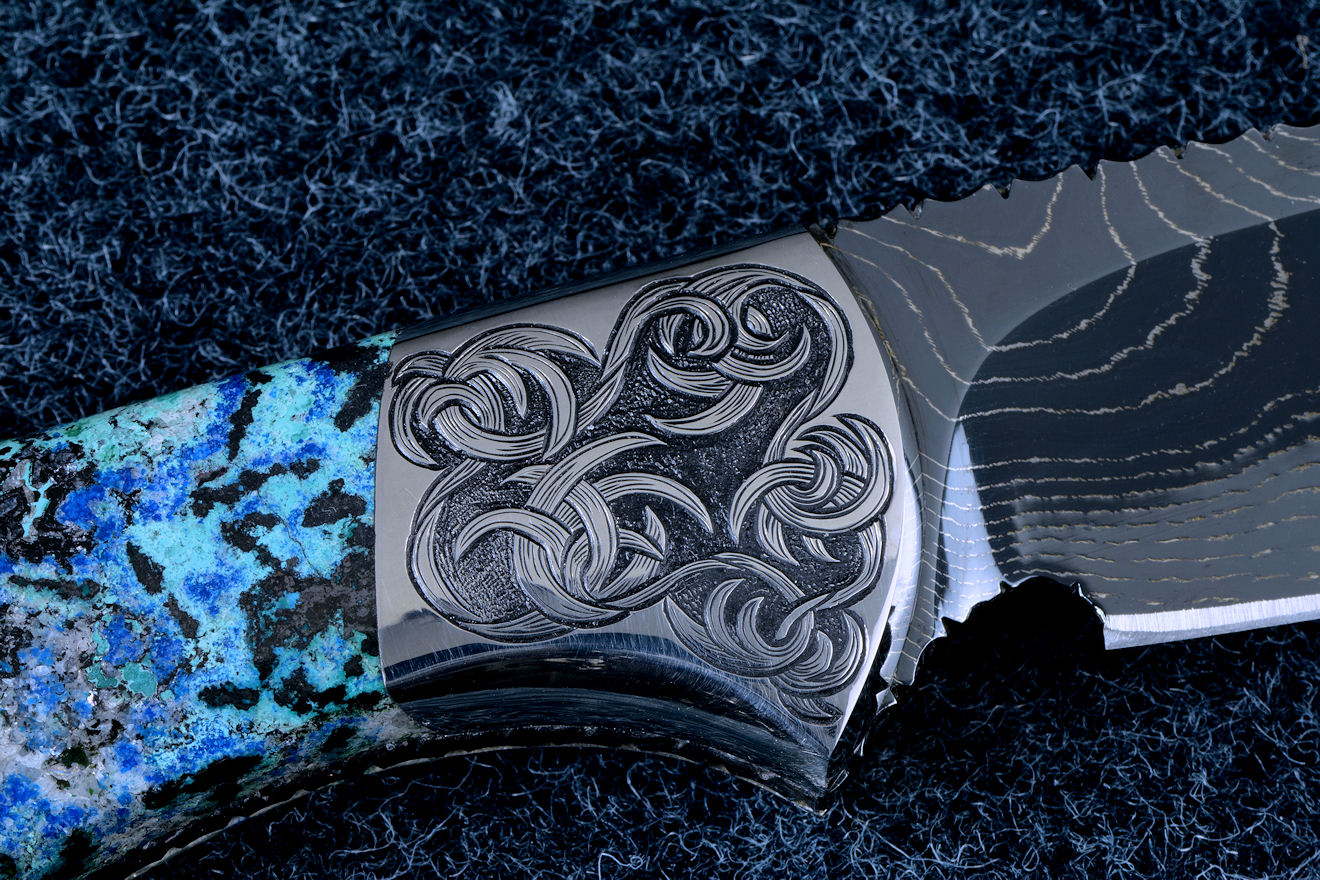 - Bolsters, Fittings: 304 Austenitic Stainless Steel, mirror polished, hand-engraved
