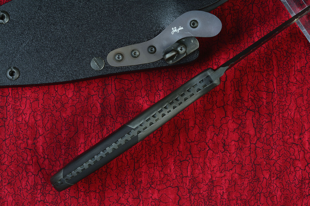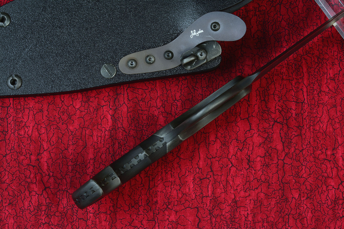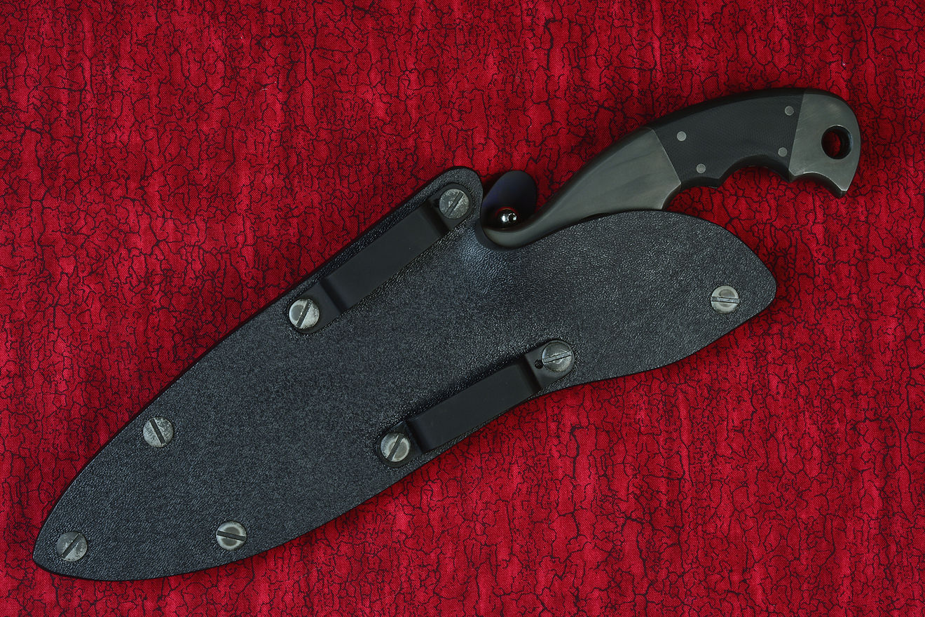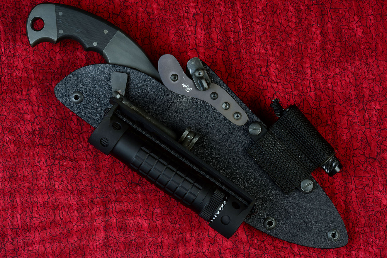 - Materials: Hybrid Tension Tab-Locking in Black Kydex, Black Anodized Aluminum Alloy, Blackened Stainless Steel, anodized 6AL4V Titanium.