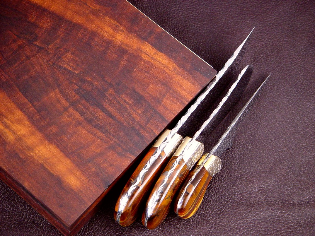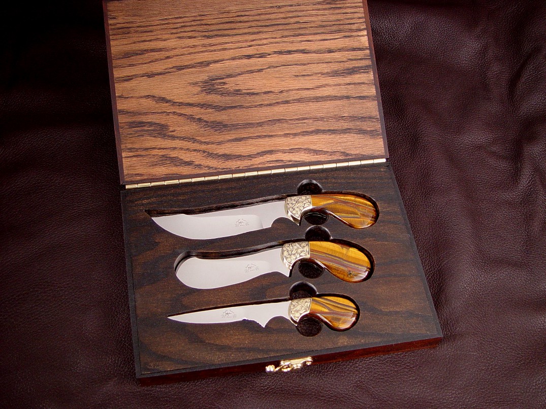 palm-nestling handles of gorgeous chatoyant tiger-eye