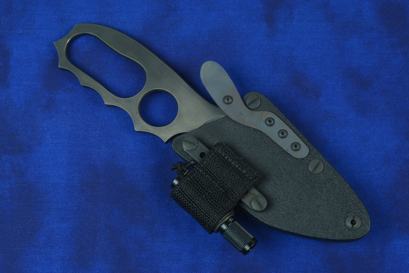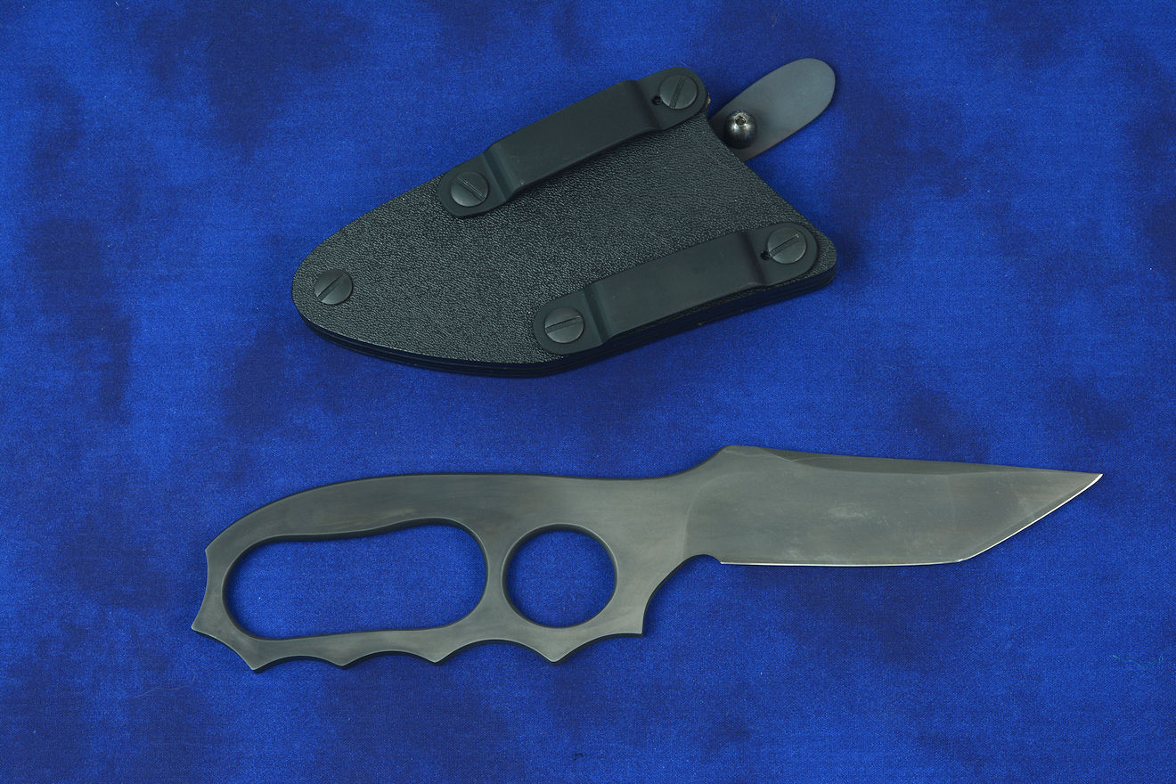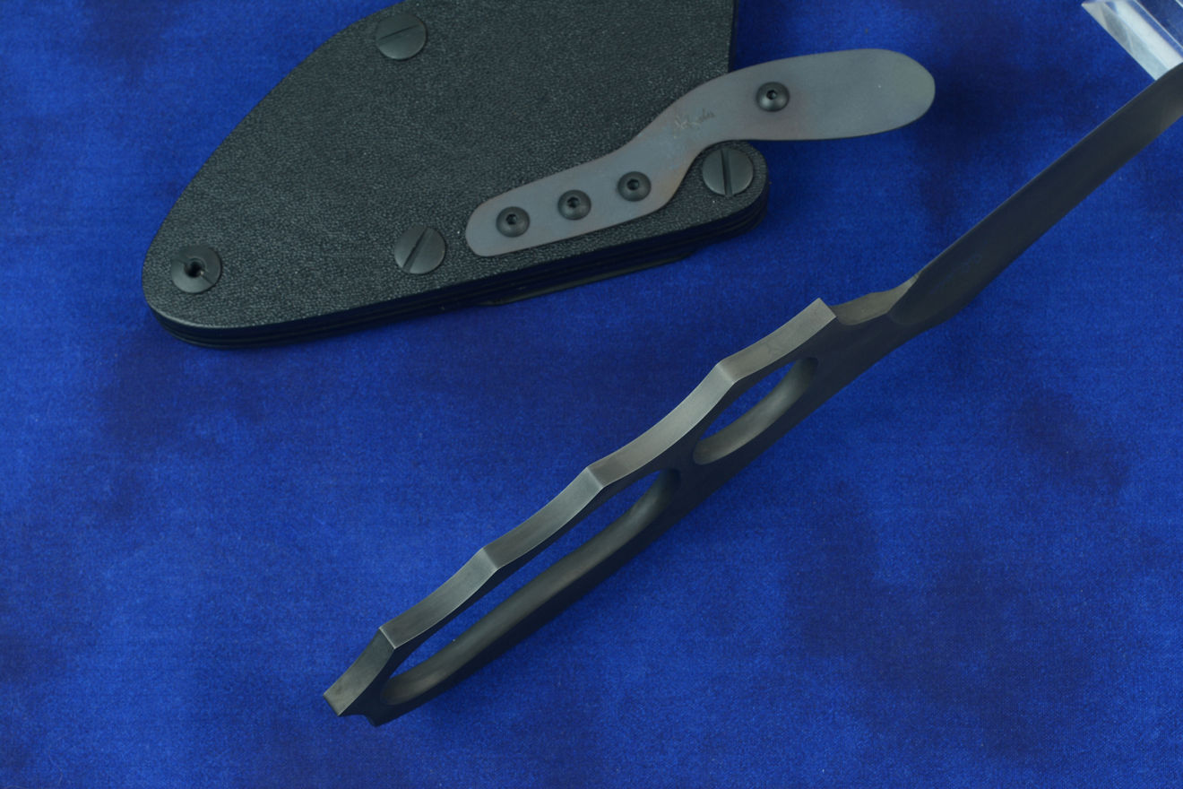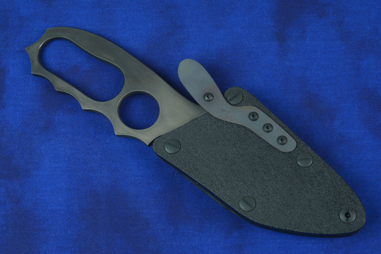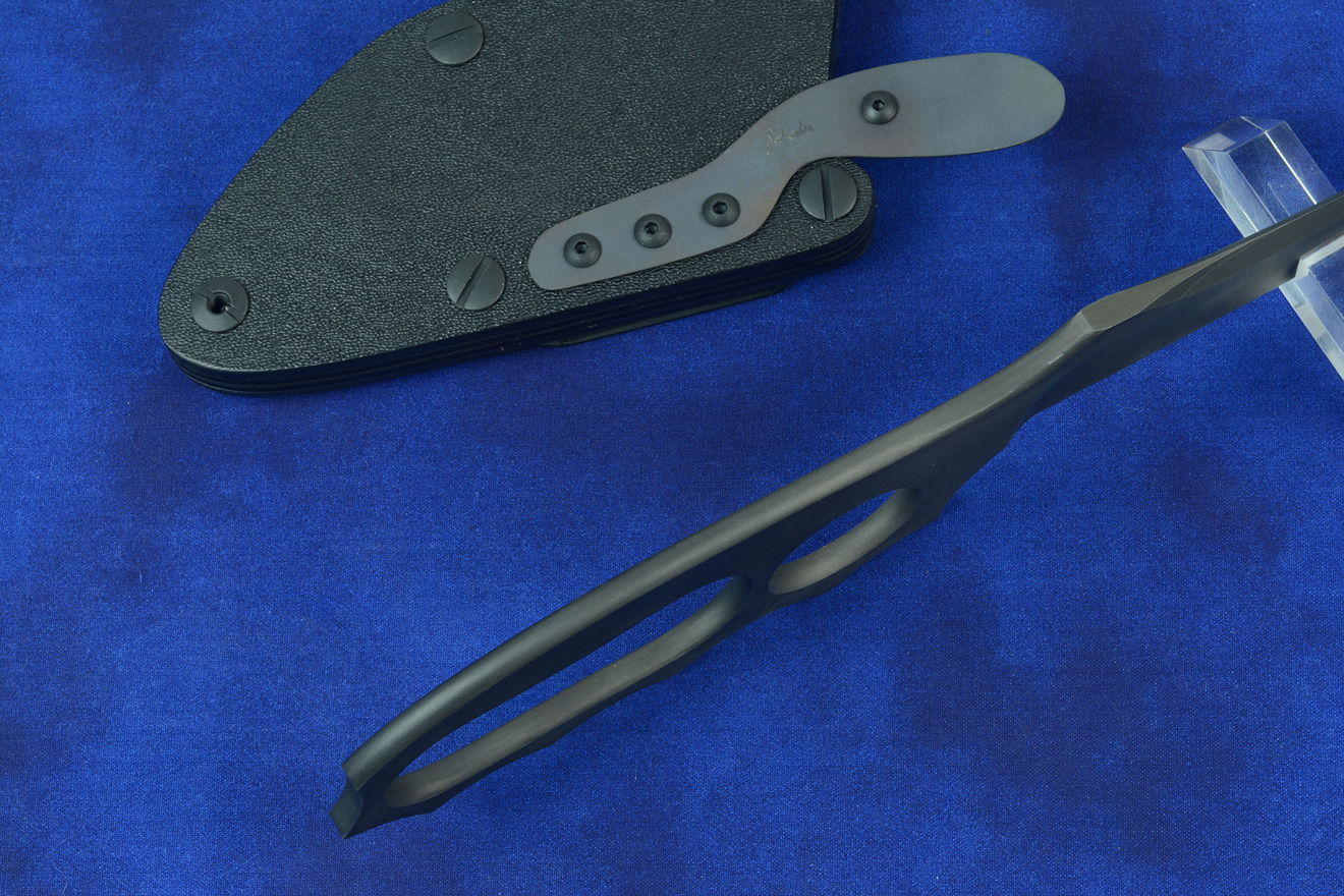 - Sheath: Hybrid Tension-Locking in Black Kydex, Black Anodized Aluminum Alloy, Black Oxide Stainless Steel, Gray-blue Oxide Titanium