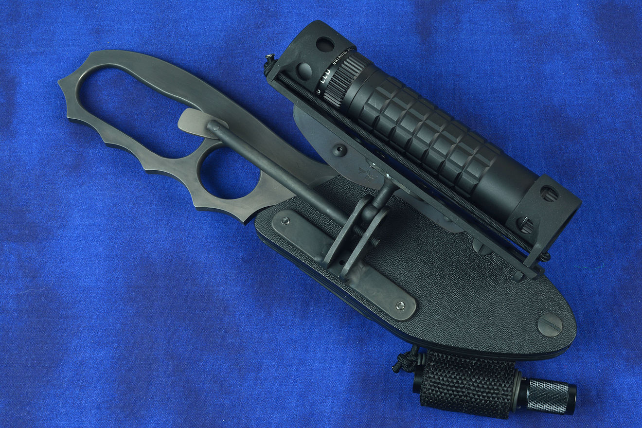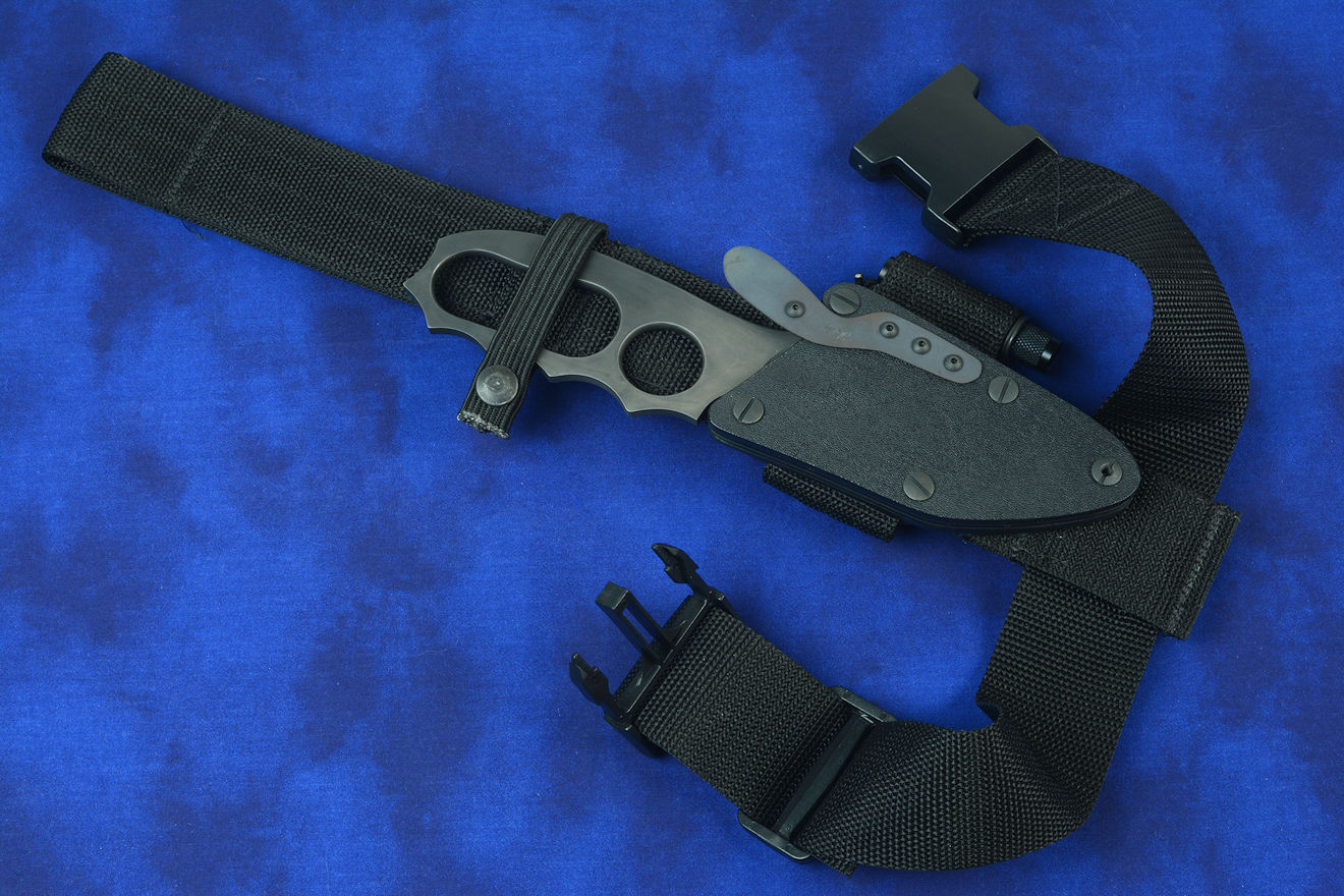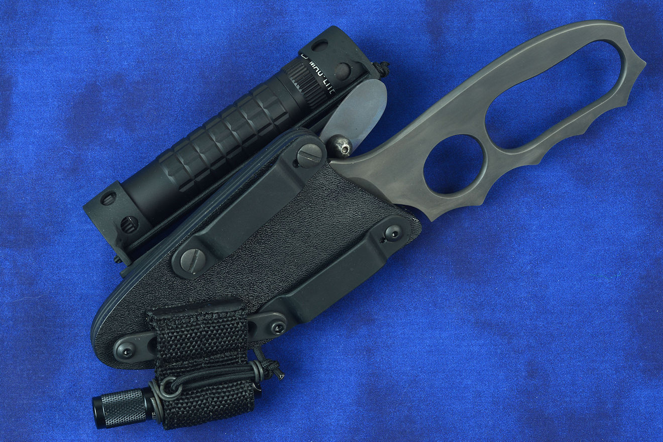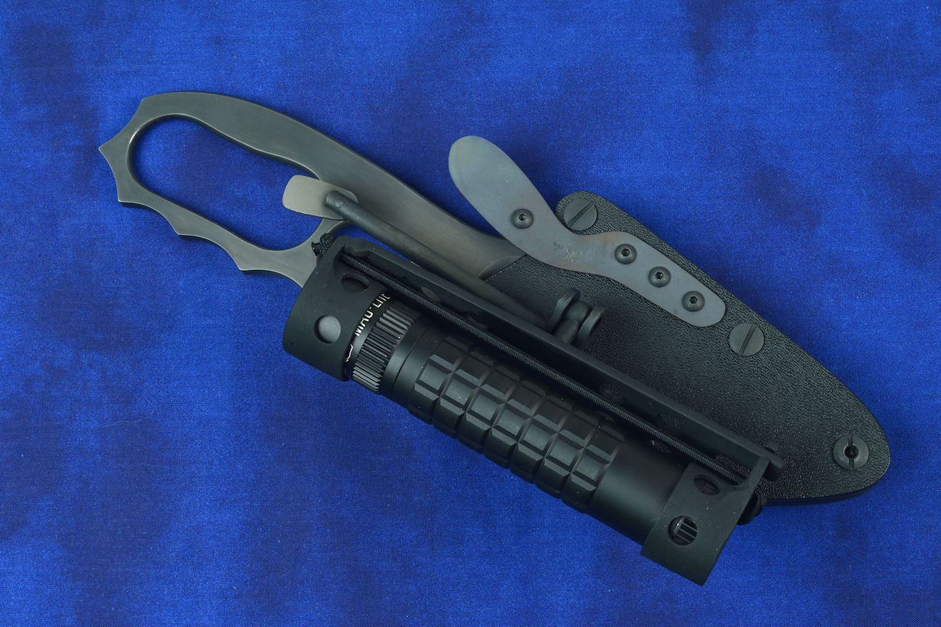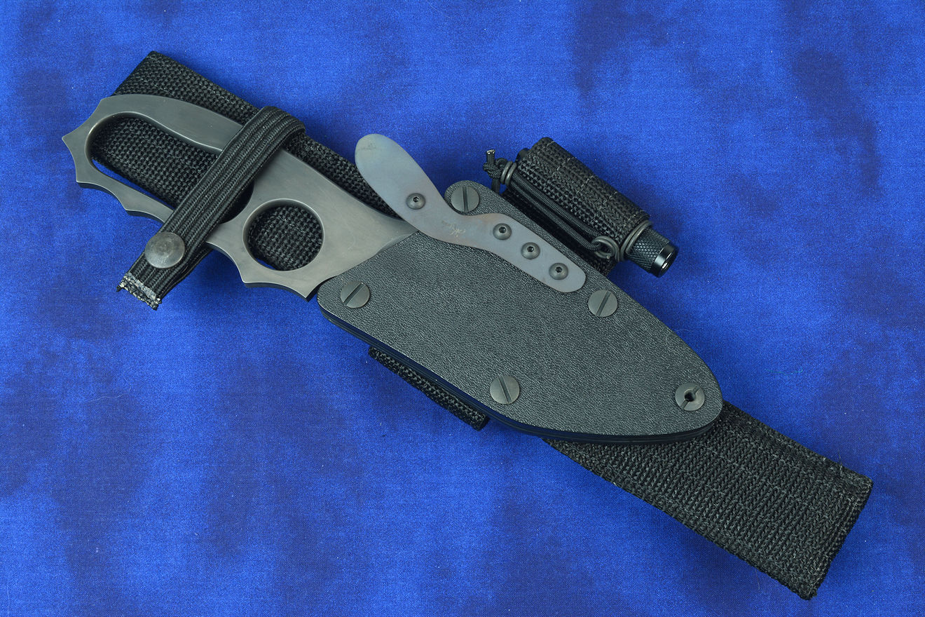 - Sheath: Hybrid Tension-Locking in Black Kydex, Black Anodized Aluminum Alloy, Black Oxide Stainless Steel, Gray-blue Oxide Titanium