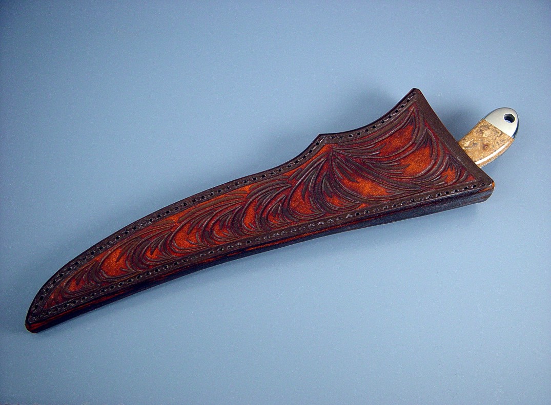 sheath of 9-10 oz. leather shoulder with a clean, variable crescent pattern set.