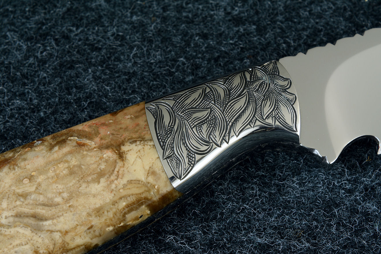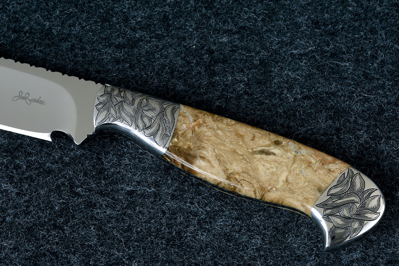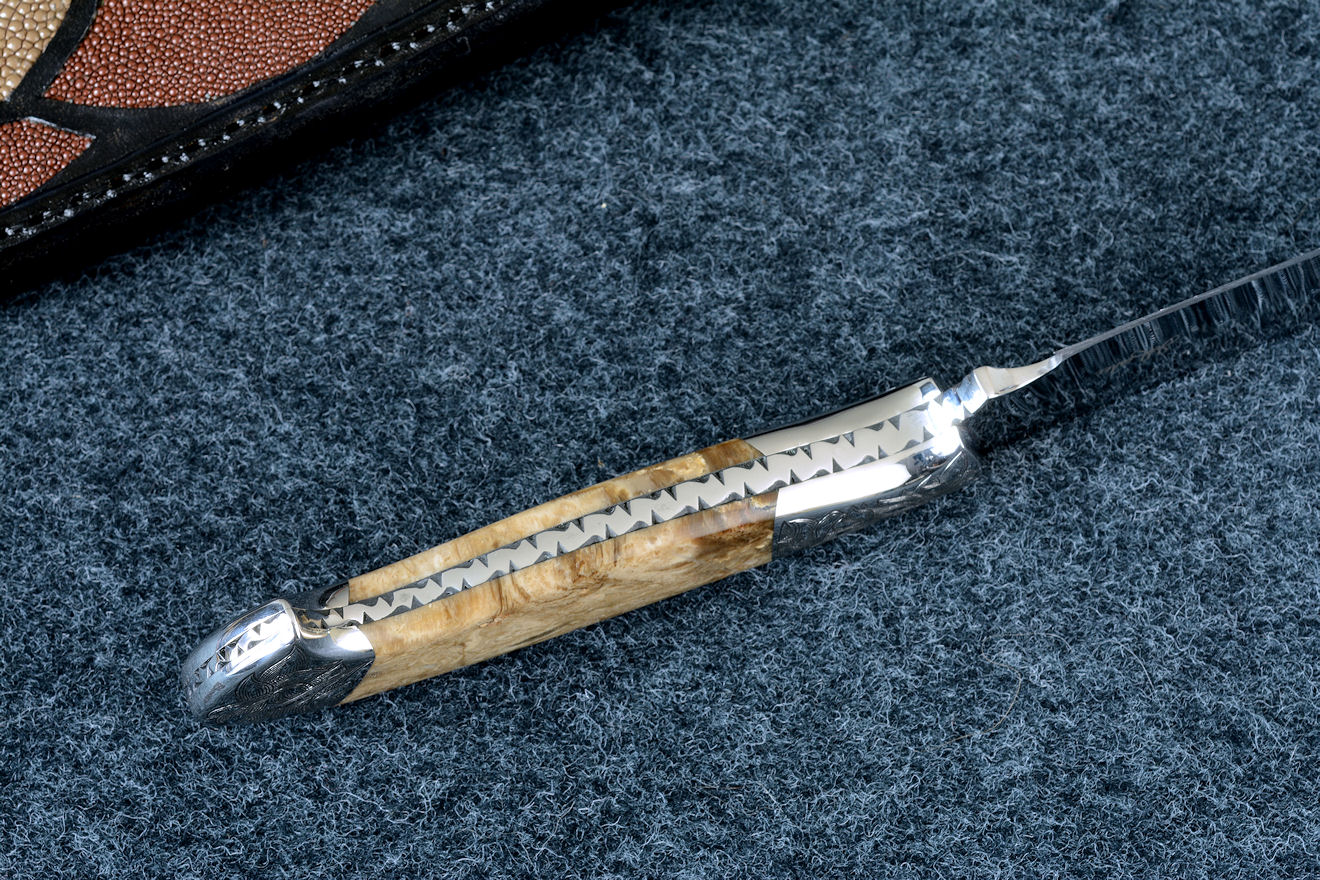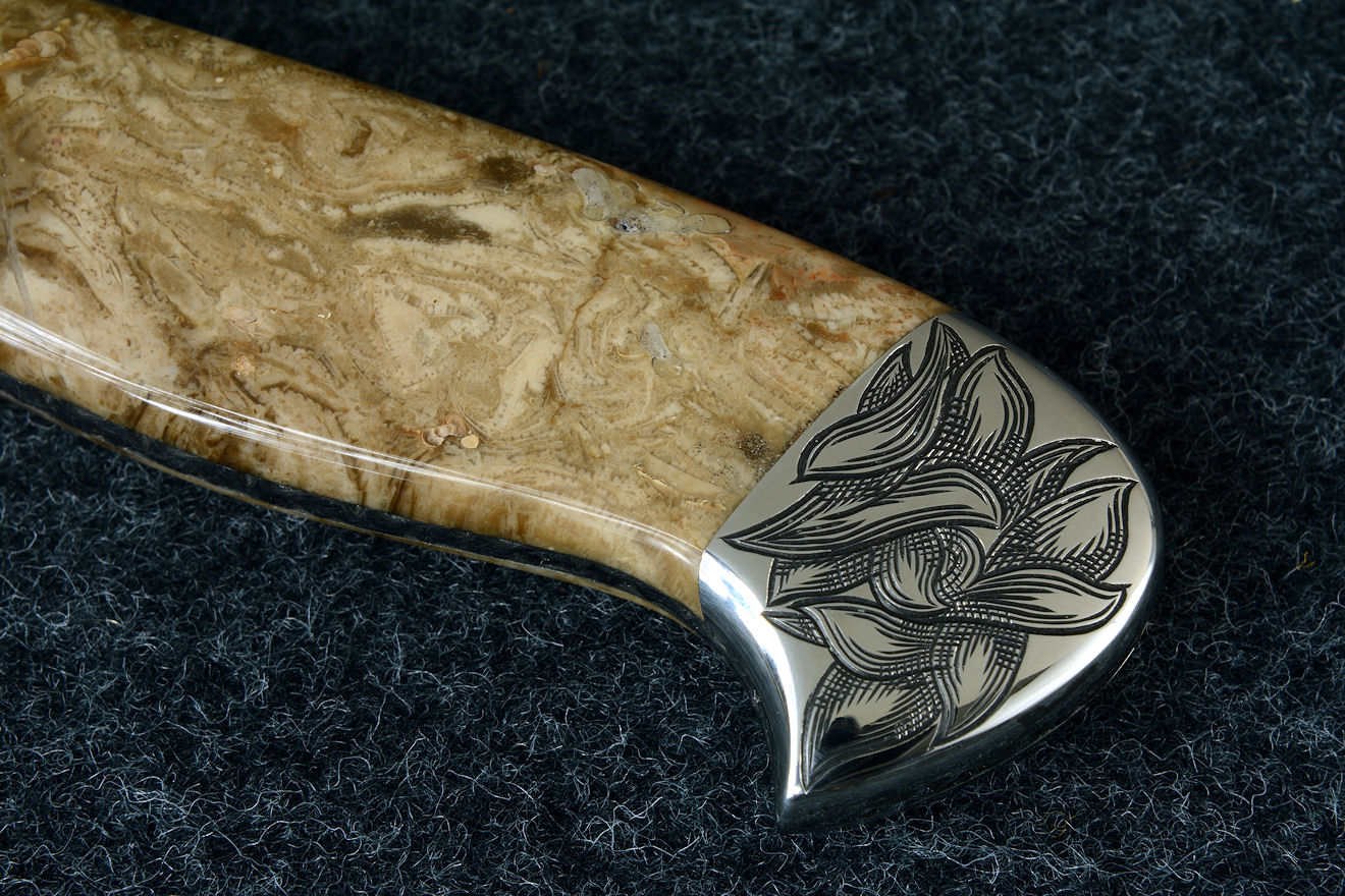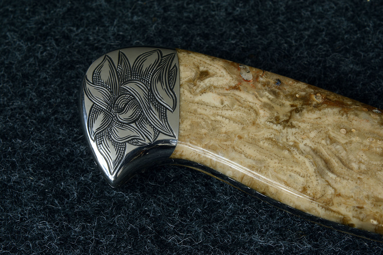 - Bolsters, Fittings: 304 Austenitic Stainless Steel, mirror polished, hand-engraved