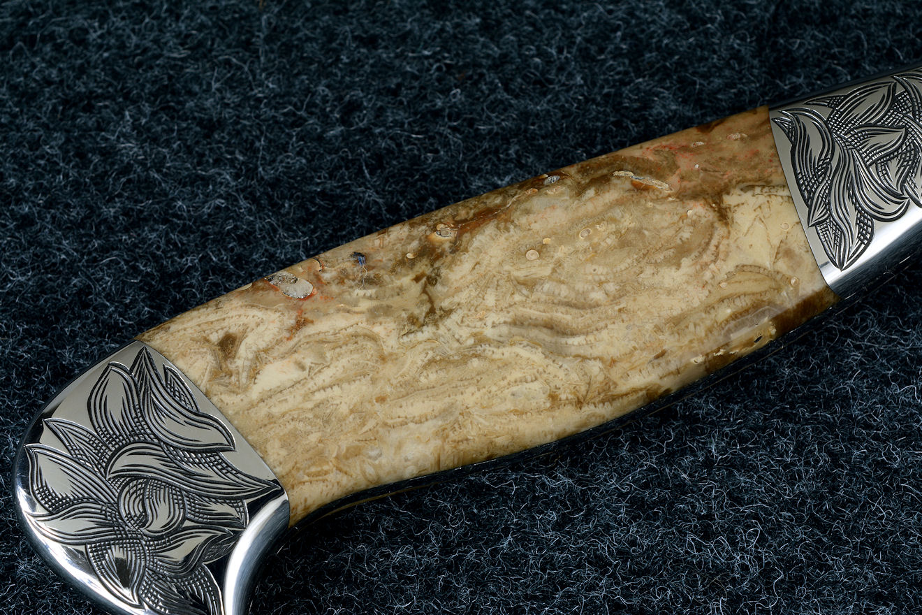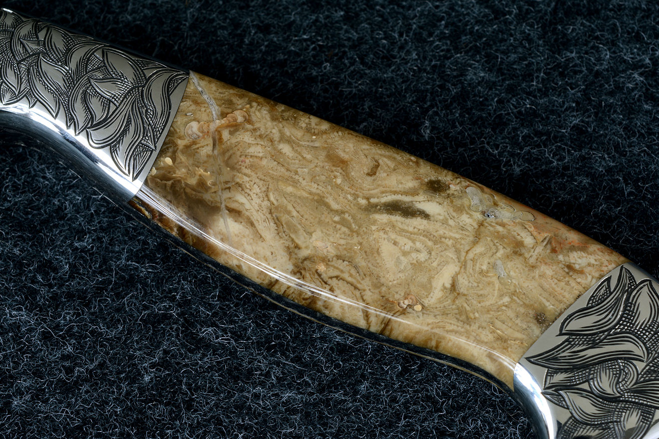bolsters are dovetailed and bed a pair of fascinating fossil handle