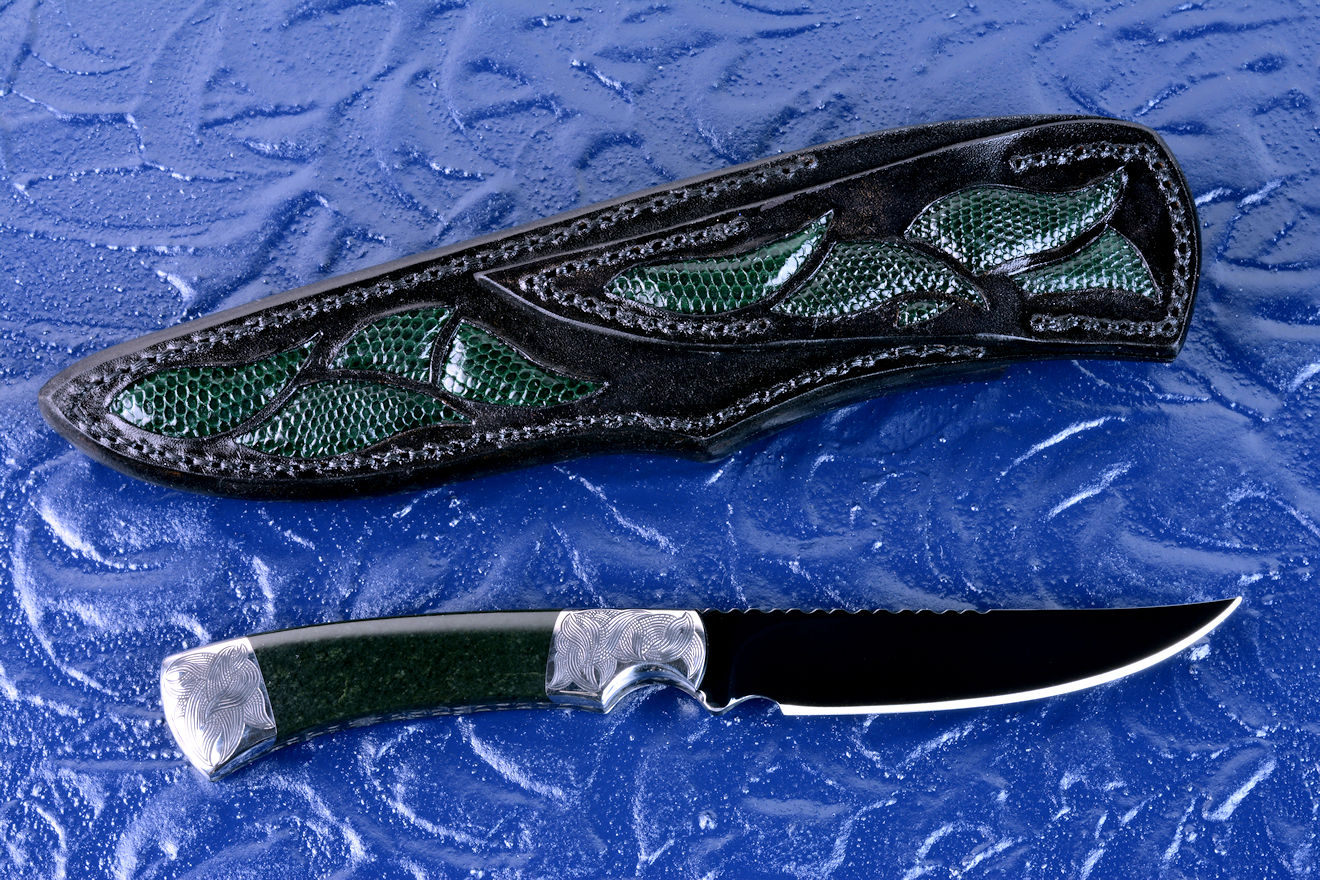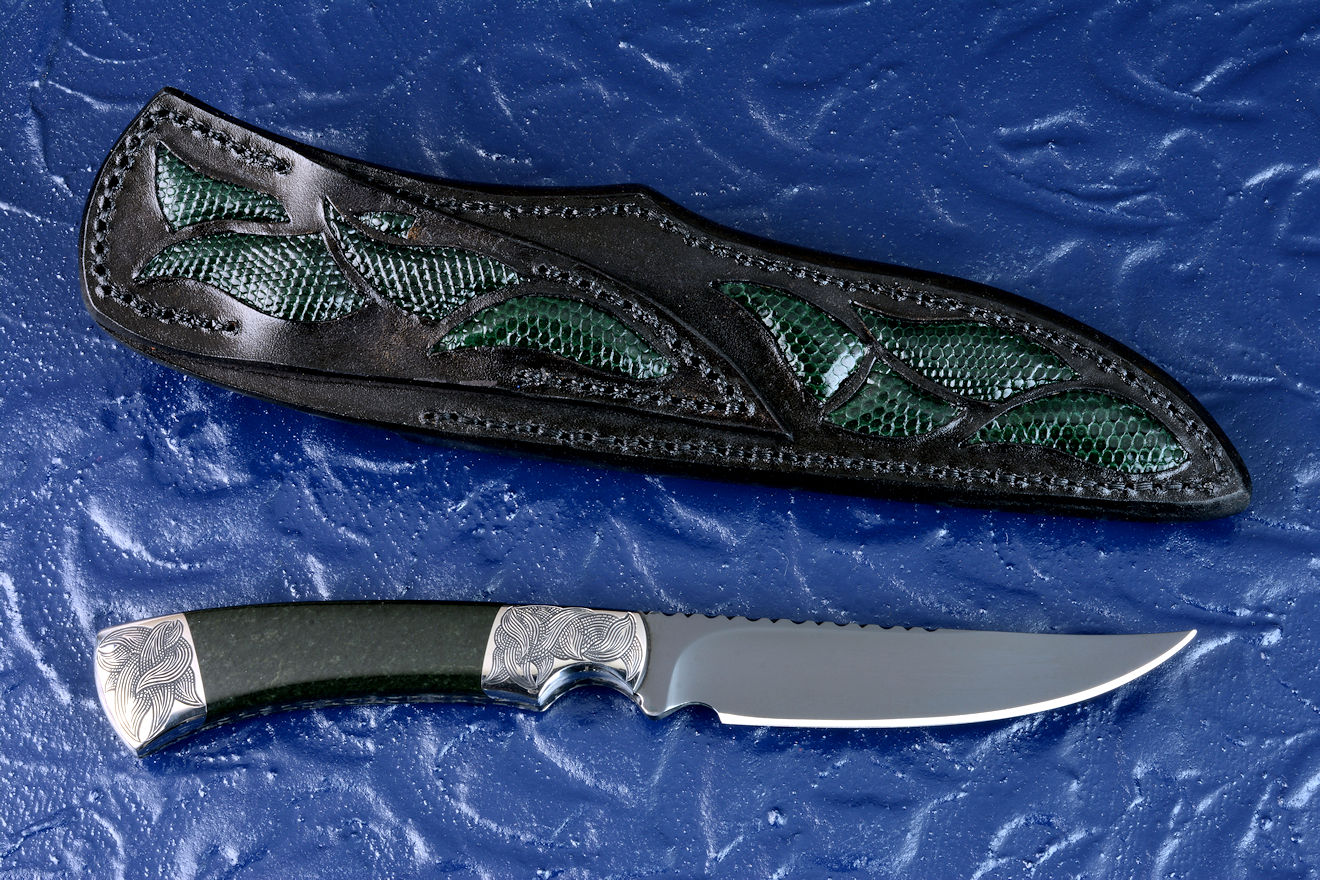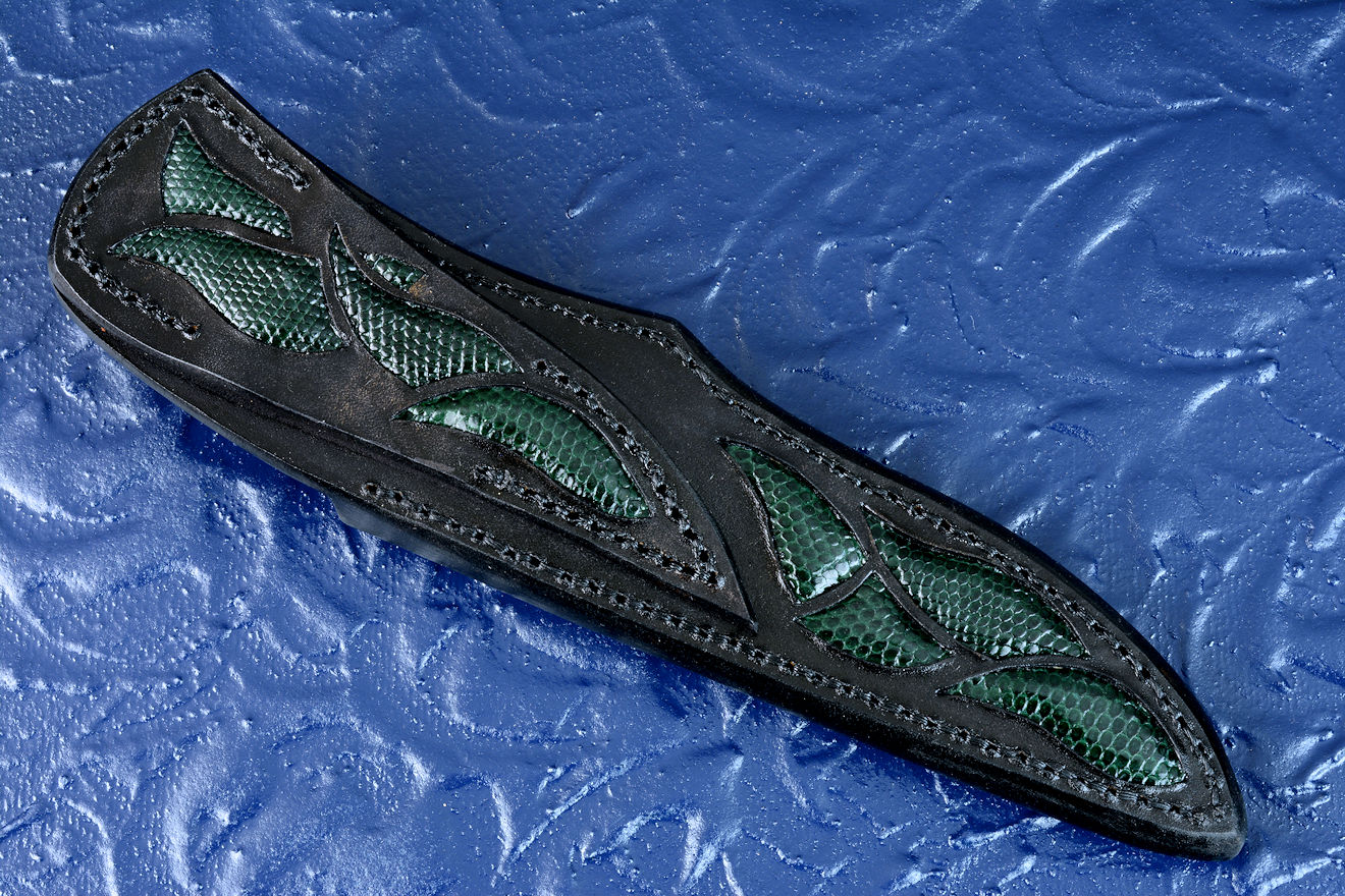 Sheath: Hand-carved leather inlaid with Tegu Lizard Skin