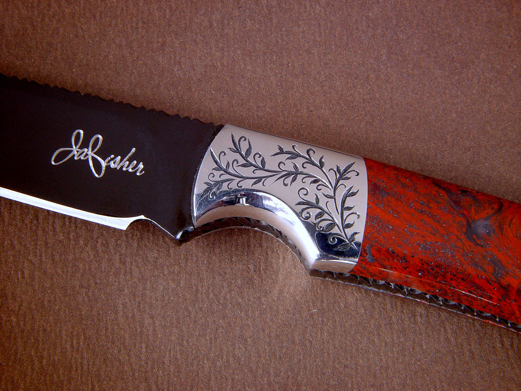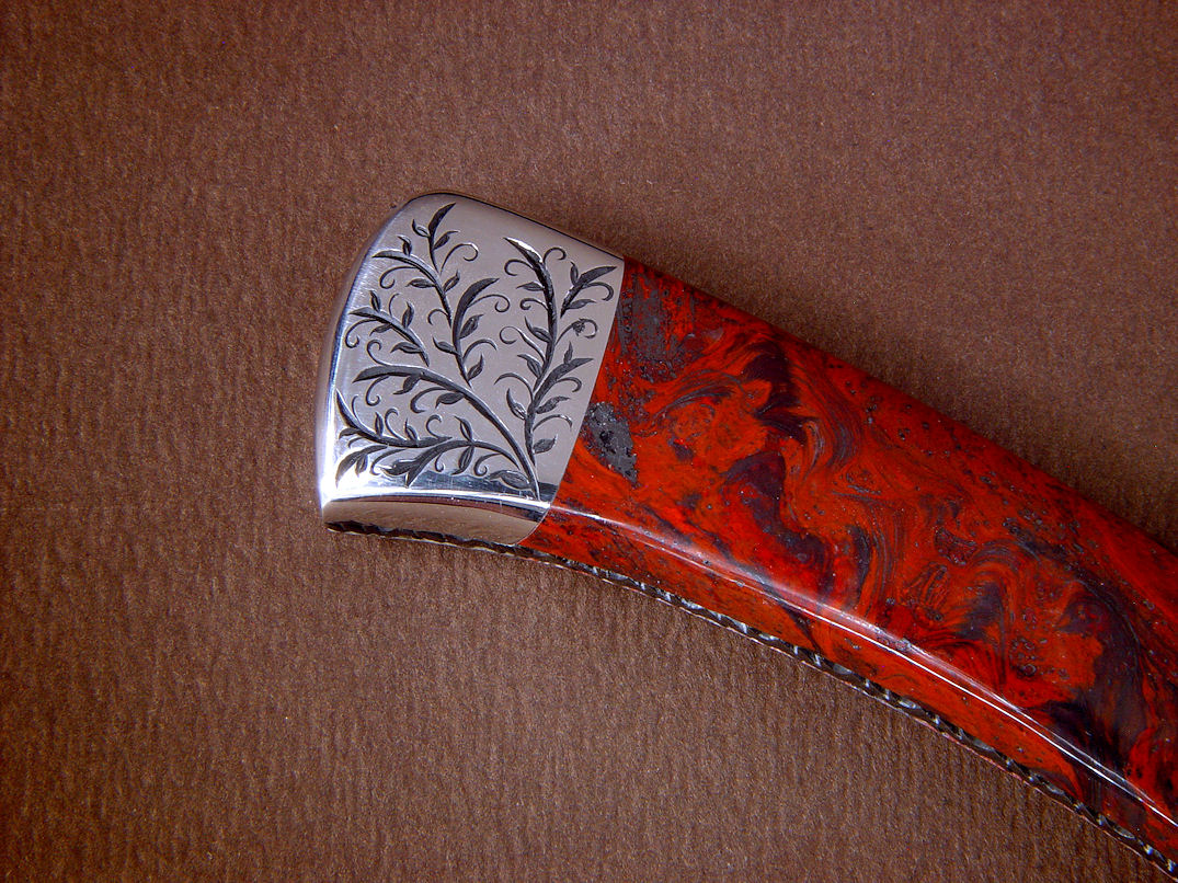 - Bolsters, Fittings: 304 Austenitic Stainless Steel, mirror polished, hand-engraved