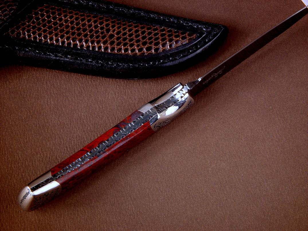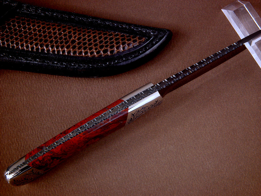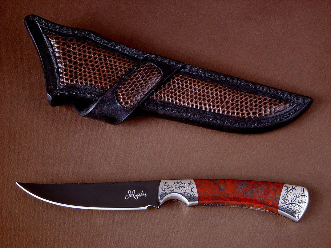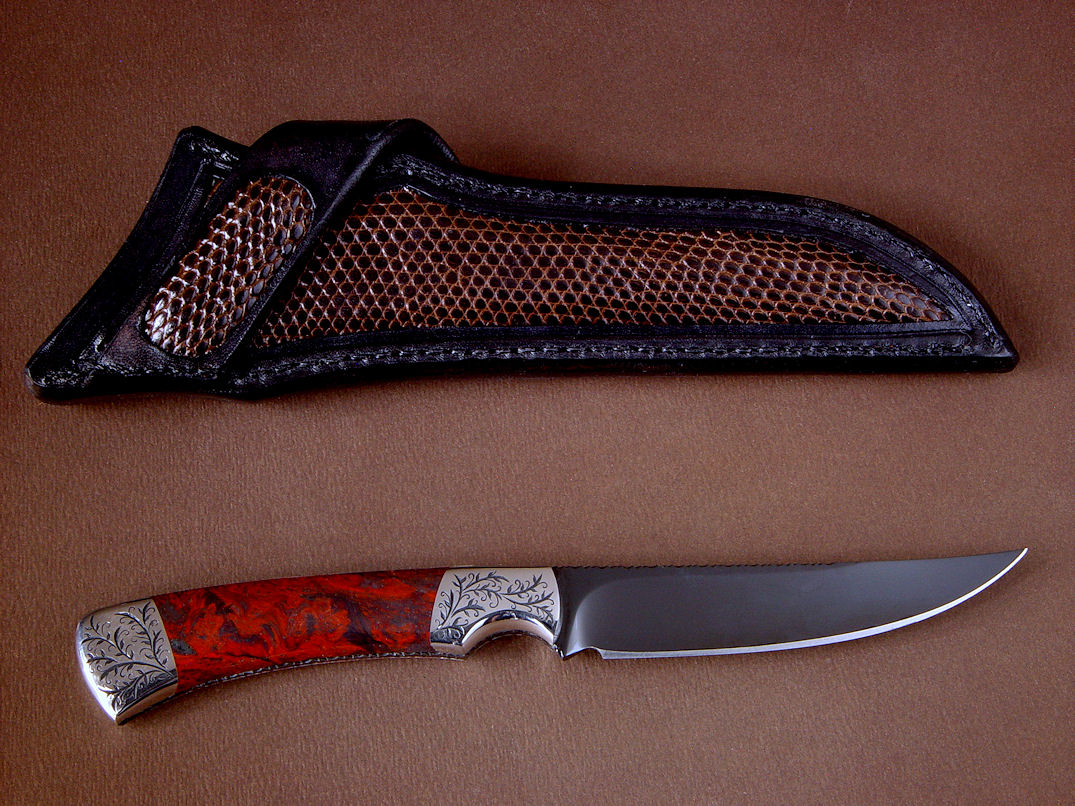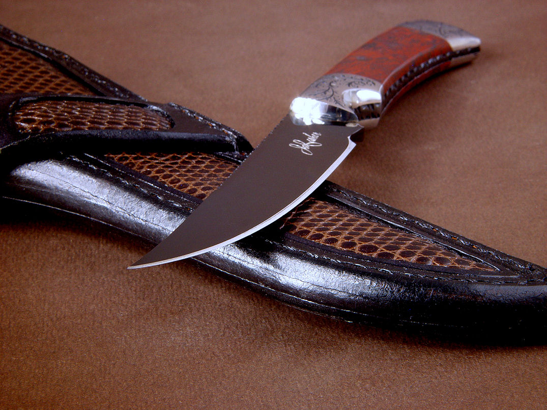 - Sheath: Hand-carved leather inlaid with Tegu Lizard Skin