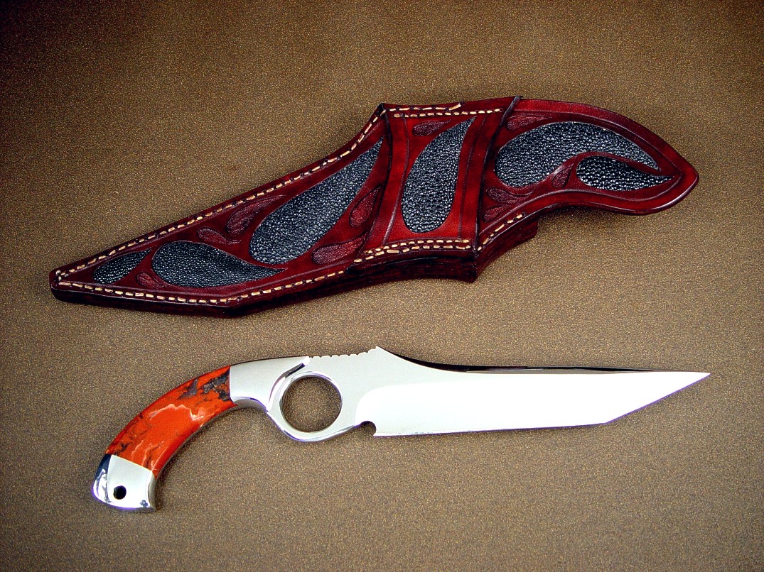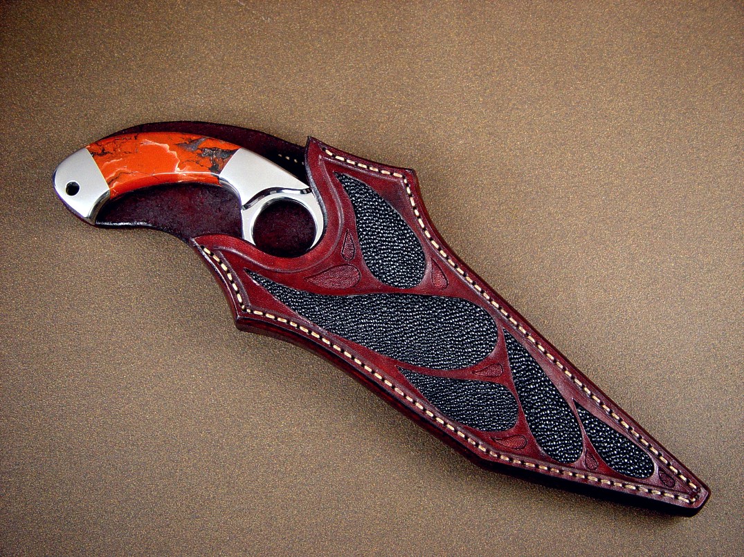Sheath: Black Rayskin Inlaid in Hand-Carved Leather