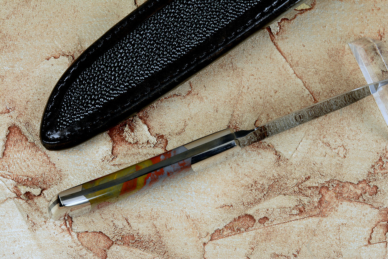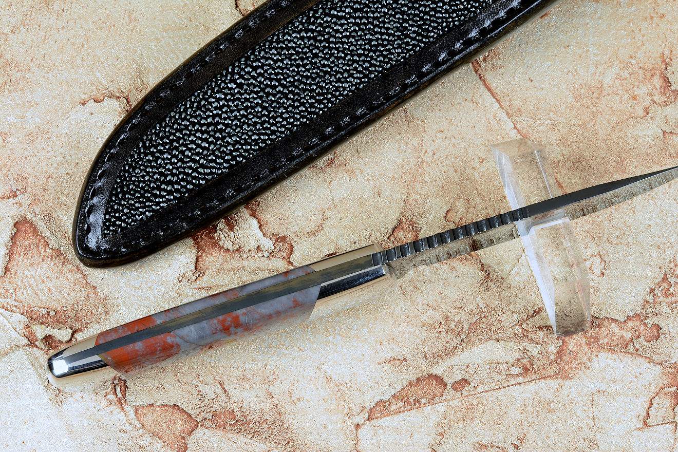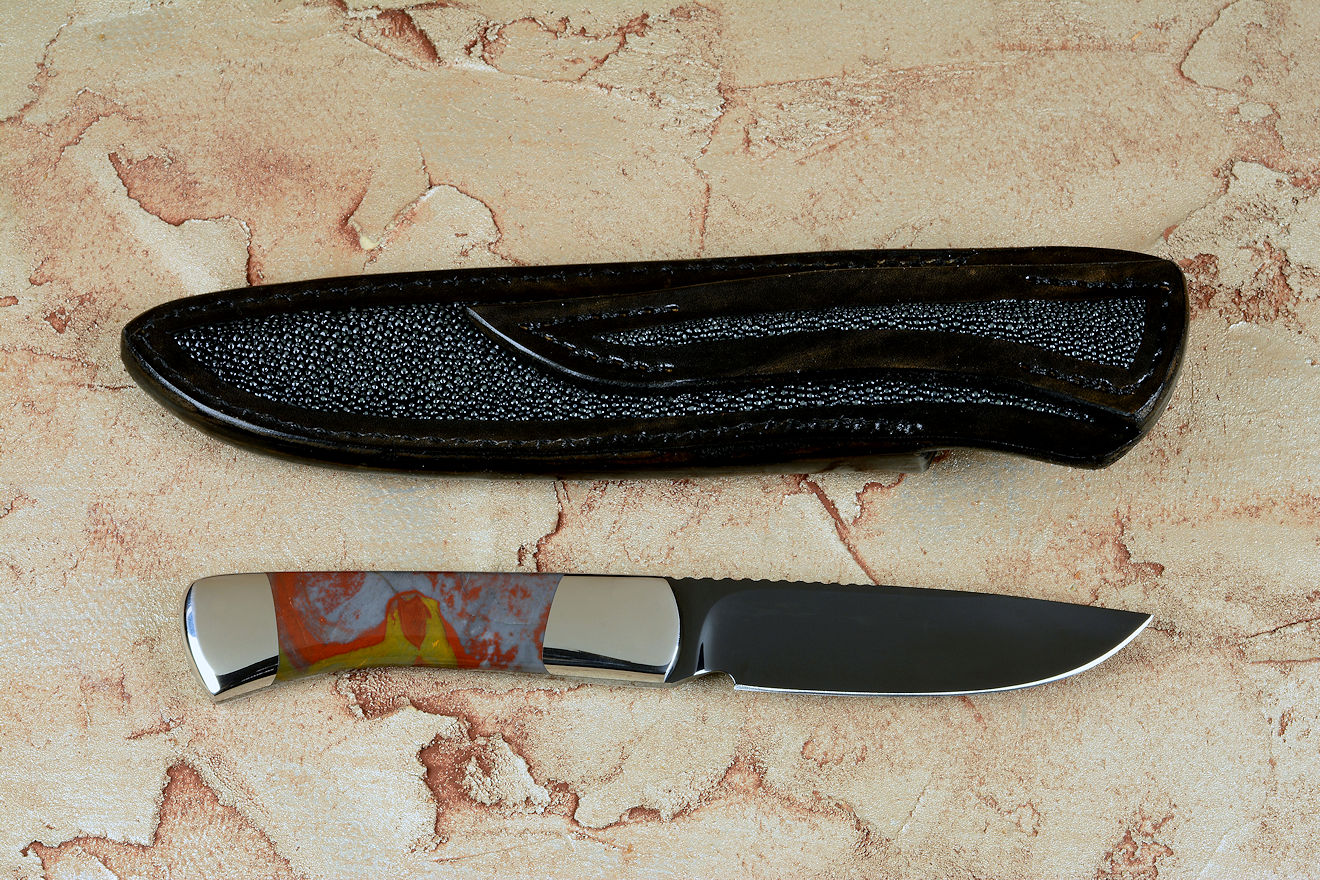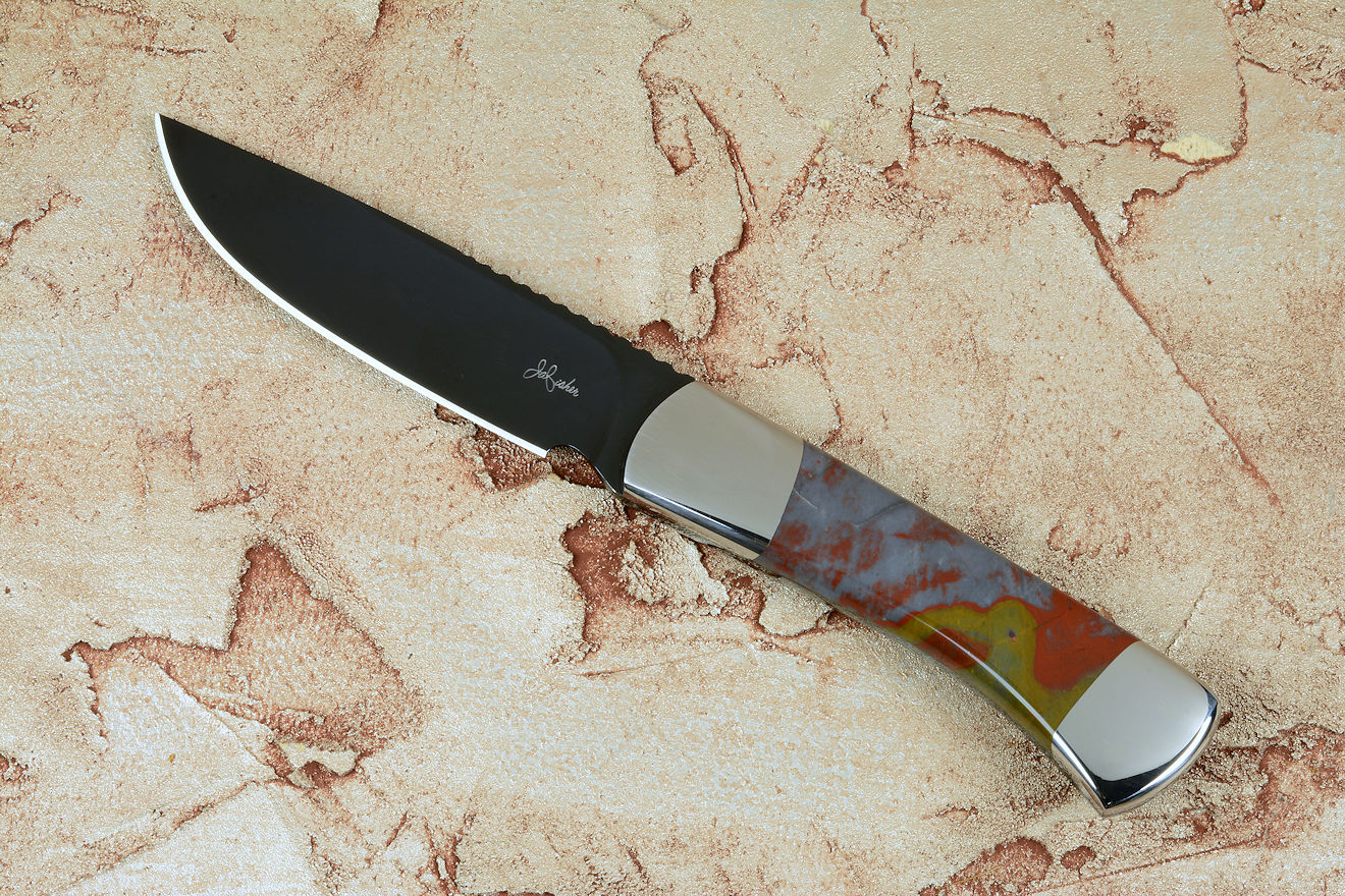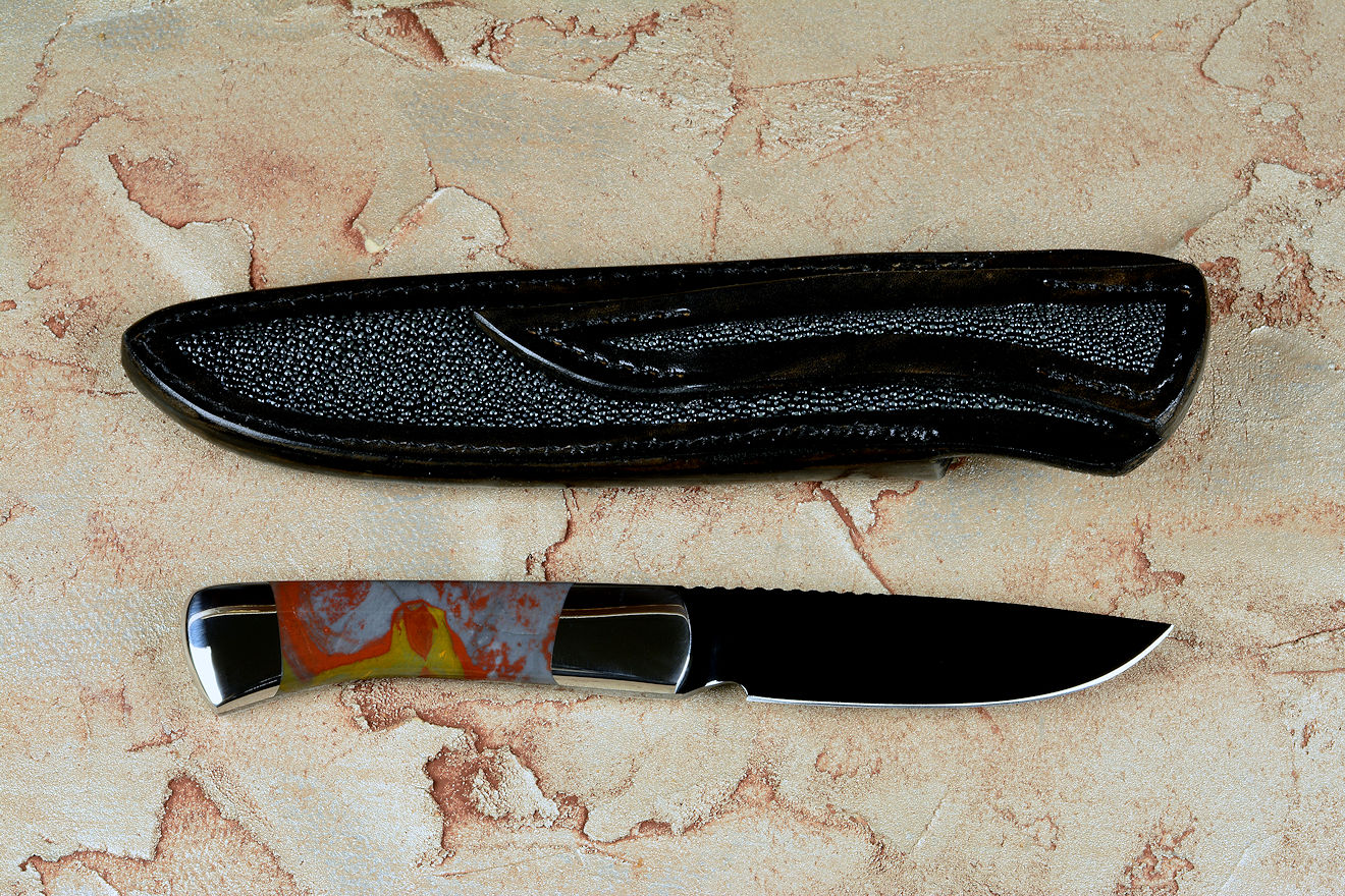 steel after your hot bluing process. I've never seen anything like it. Great choice on the Sunset Jasper handle